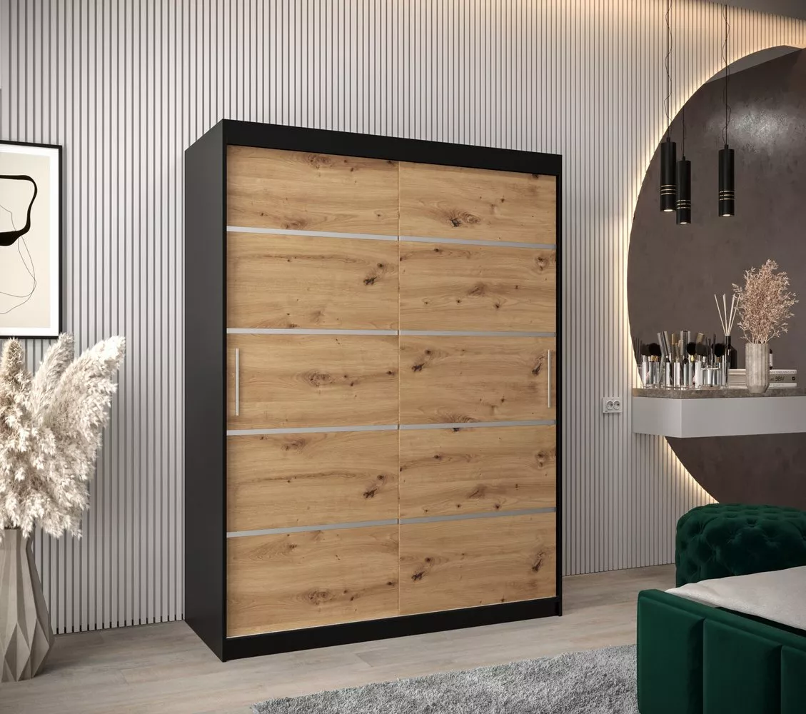 Šatní skříň ENNI - šířka 150 cm, černá / dub artisan