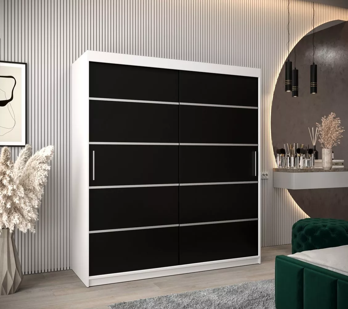 Šatní skříň ENNI - šířka 180 cm, bílá / černá