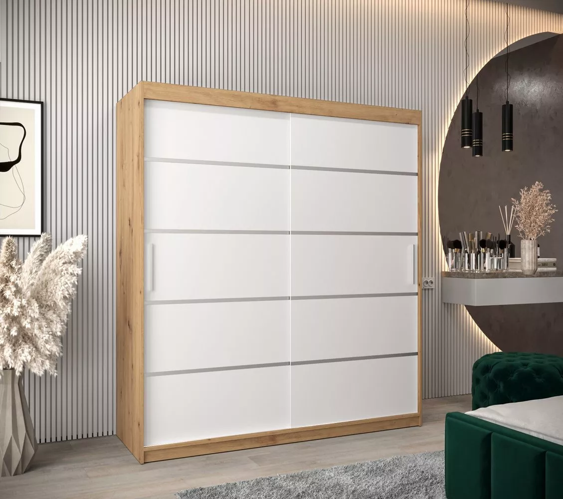 Šatní skříň ENNI - šířka 180 cm, dub artisan / bílá