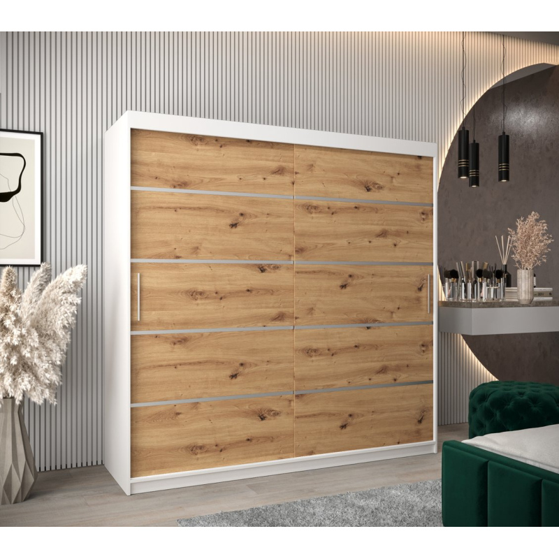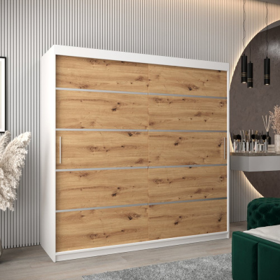 Šatní skříň ENNI - šířka 200 cm, bílá / dub artisan