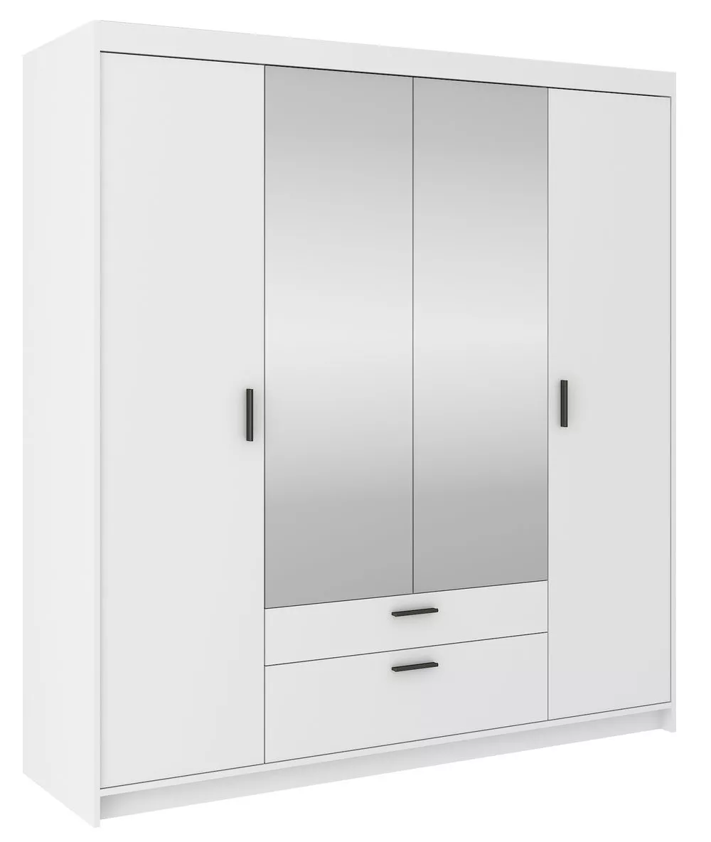 Čtyřdveřová šatní skříň se zrcadlem ADELINA - šířka 176 cm, bílá