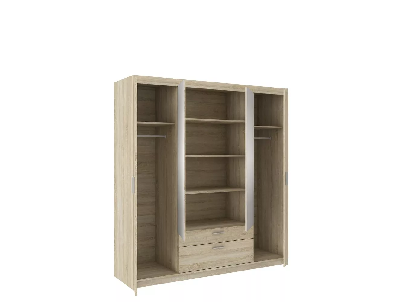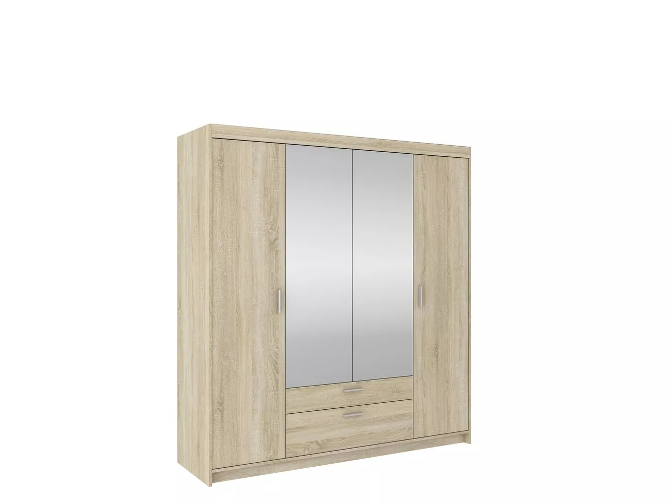 Čtyřdveřová šatní skříň se zrcadlem ADELINA - šířka 176 cm, dub sonoma