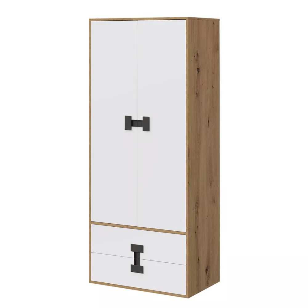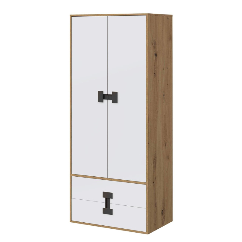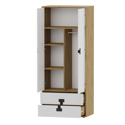 Dvoudveřová šatní skříň 80 cm BASHIRA - dub / bílá