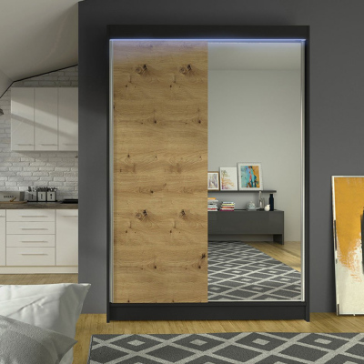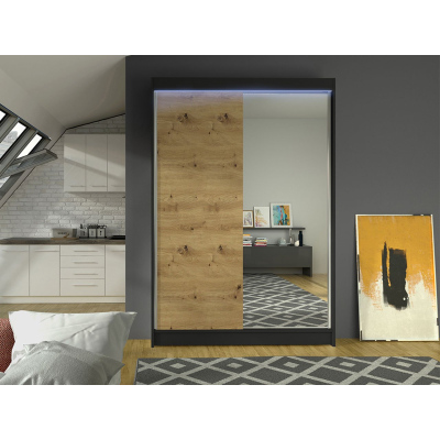 Šatní skříň 120 cm se zrcadlem a LED RGB osvětlením SAMANRE 1 - černá / dub artisan