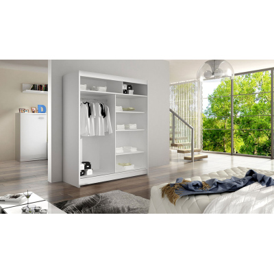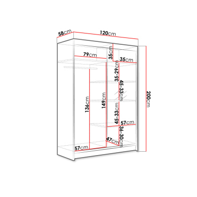 Šatní skříň SAMANRE 1 poskytuje dostatek úložného prostoru v podobě hlubokých polic a šatní tyče. Skříň je vybavena posuvnými dveřmi pro snadnější a praktičtější manipulaci. Součástí skříně je praktické zrcadlo a RGB LED osvětlení.