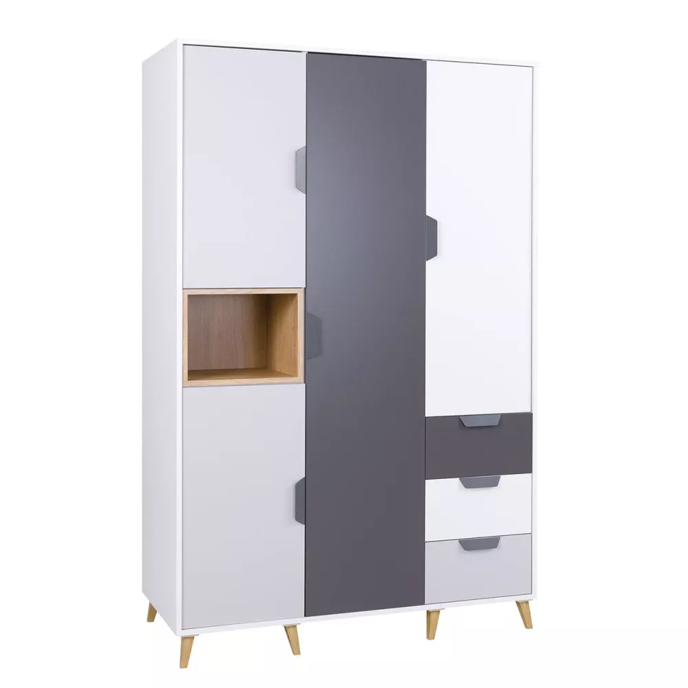 Šatní skříň 120 cm do studentského pokoje TAMANI 1 - dub lefkas / bílá / grafitová