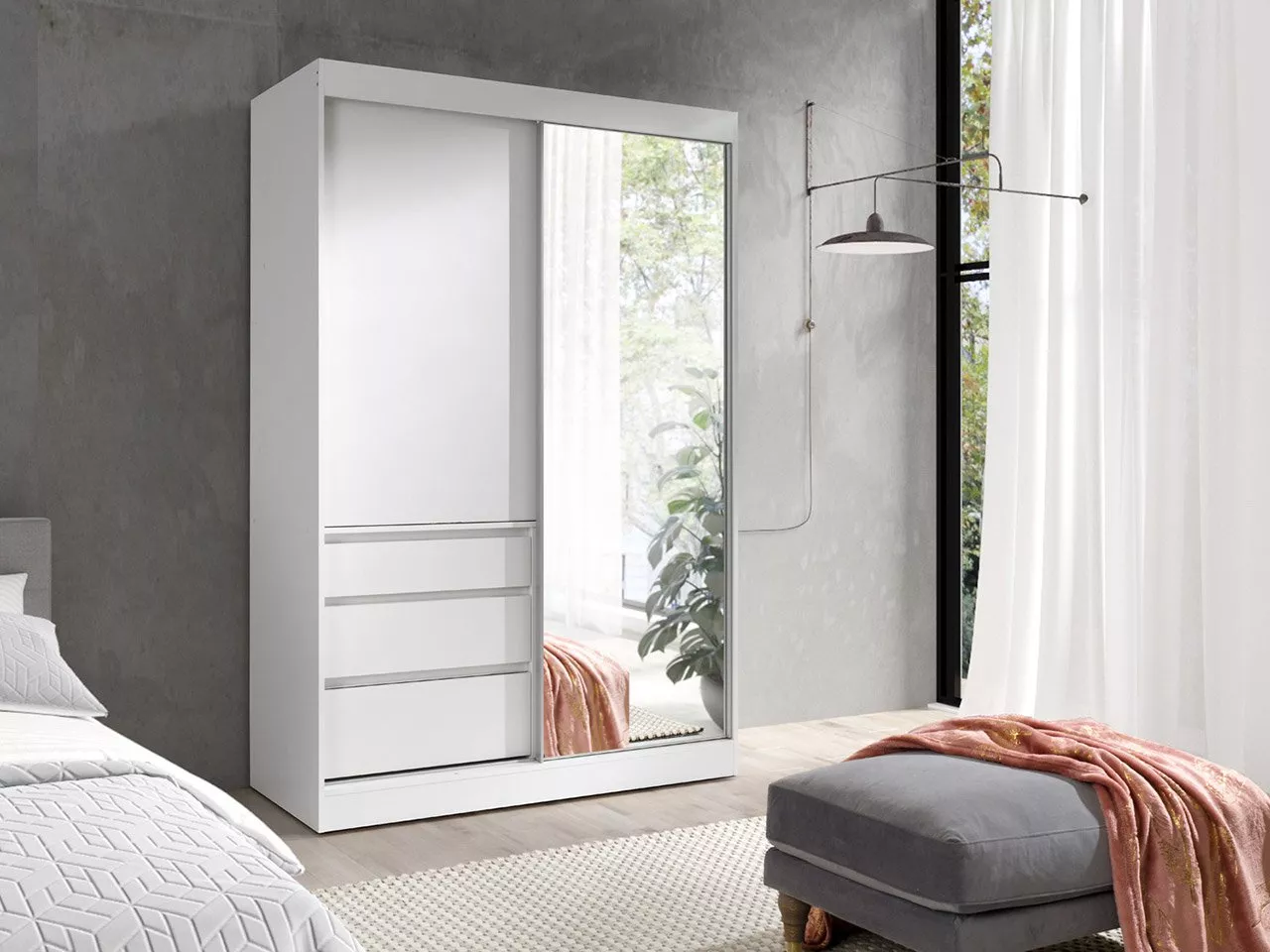 Šatní skříň se zrcadlem 140 cm DONG - bílá