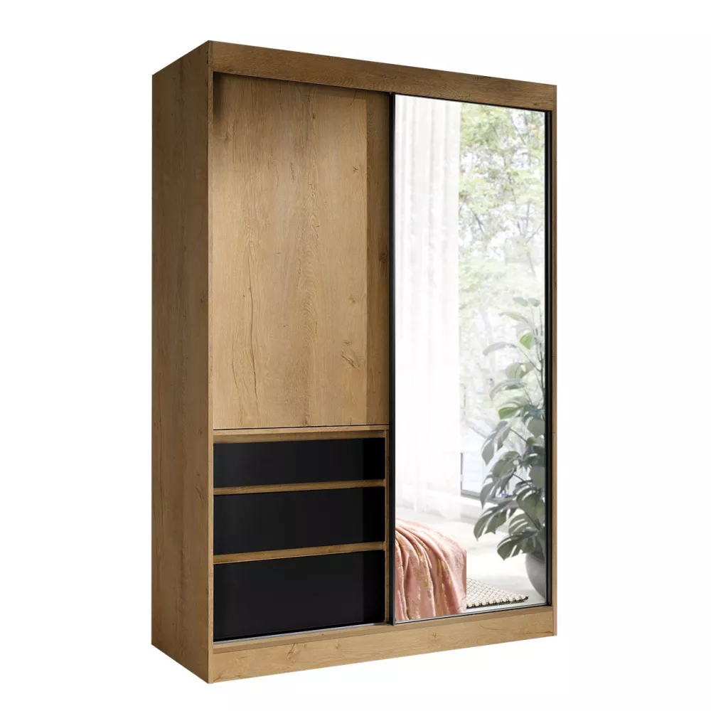 Chytře navržená šatní skříň se zrcadlem DONG je vybavená posuvnými dvířky pro snadnější manipulaci. Skříň vyniká velkým množstvím úložného prostoru, který umožňuje pečlivě zorganizovat prostor pro oddělení oblečení, bot i doplňků.