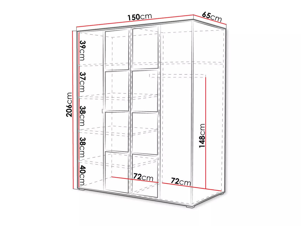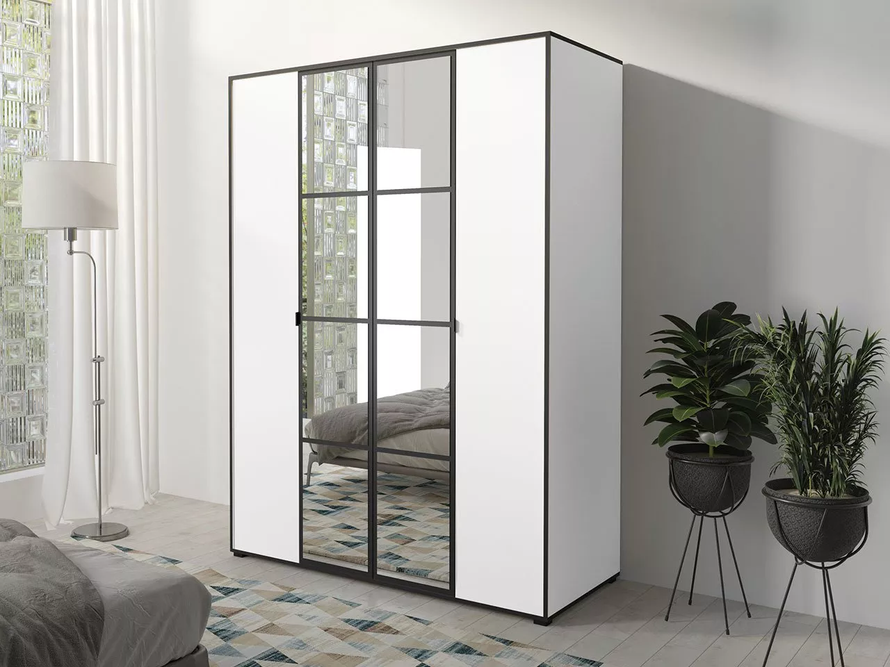 Šatní skříň se zrcadlem 150 cm HONG 1 - bílá / černá