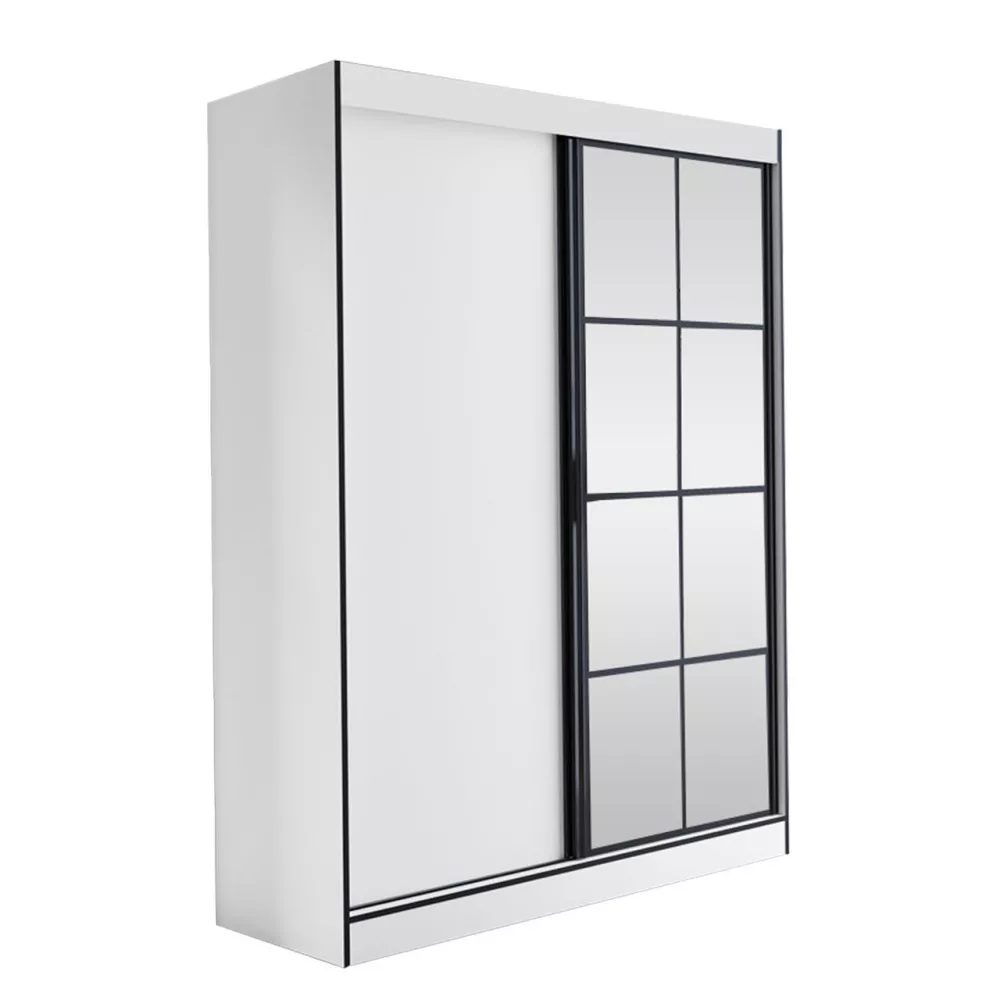 Šatní skříň se zrcadlem 150 cm HONG 2 - bílá / černá