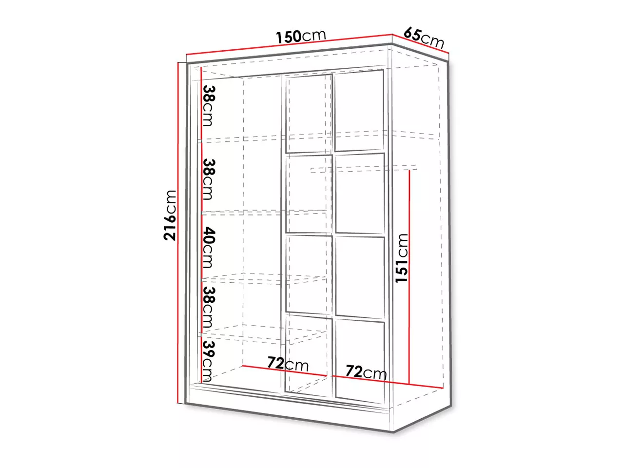 Kombinovaná šatní skříň se zrcadlem HONG 2 poskytuje dostatek úložného prostoru v podobě hlubokých polic a šatní tyče. Skříň je vybavena posuvnými dveřmi pro snadnější manipulaci.