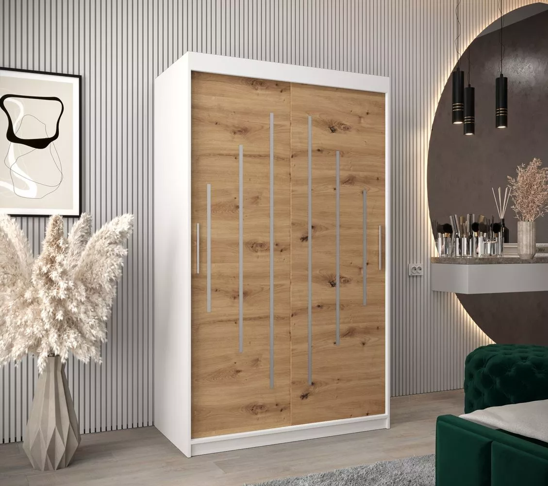 Šatní skříň MARIA - šířka 120 cm, bílá / dub artisan