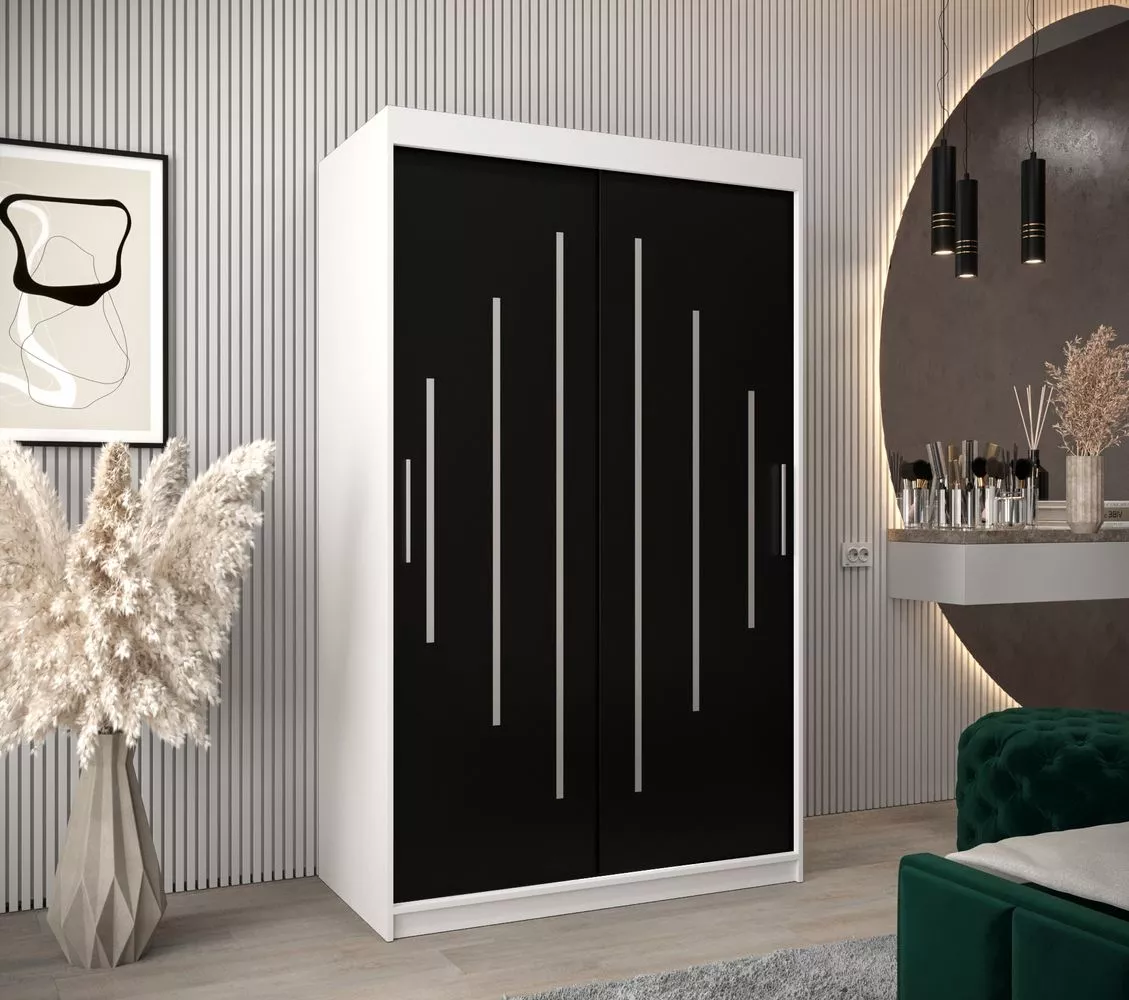 Šatní skříň MARIA - šířka 120 cm, bílá / černá