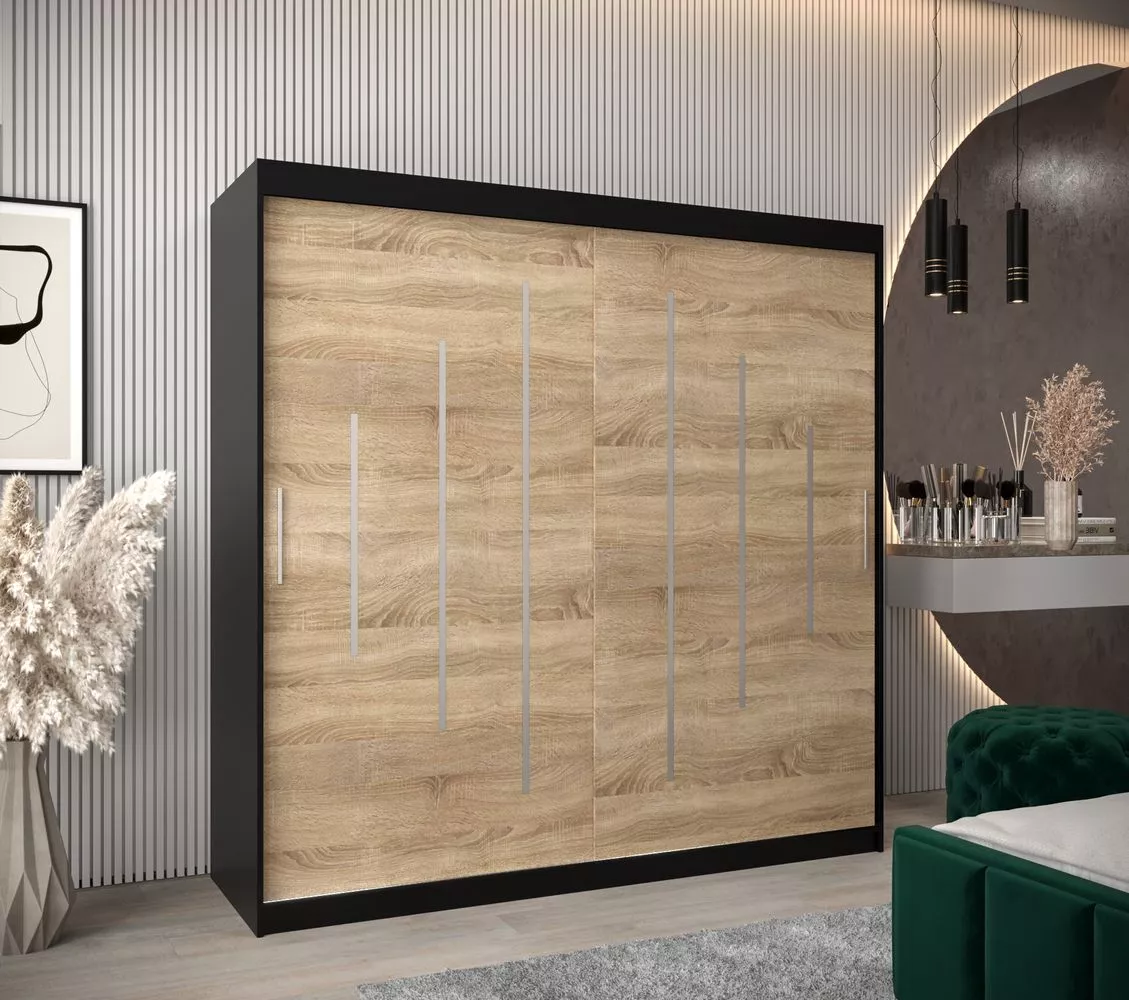 Šatní skříň ERIKA - šířka 200 cm, černá / dub sonoma