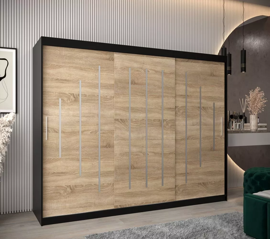 Šatní skříň ESTER - šířka 250 cm, černá / dub sonoma