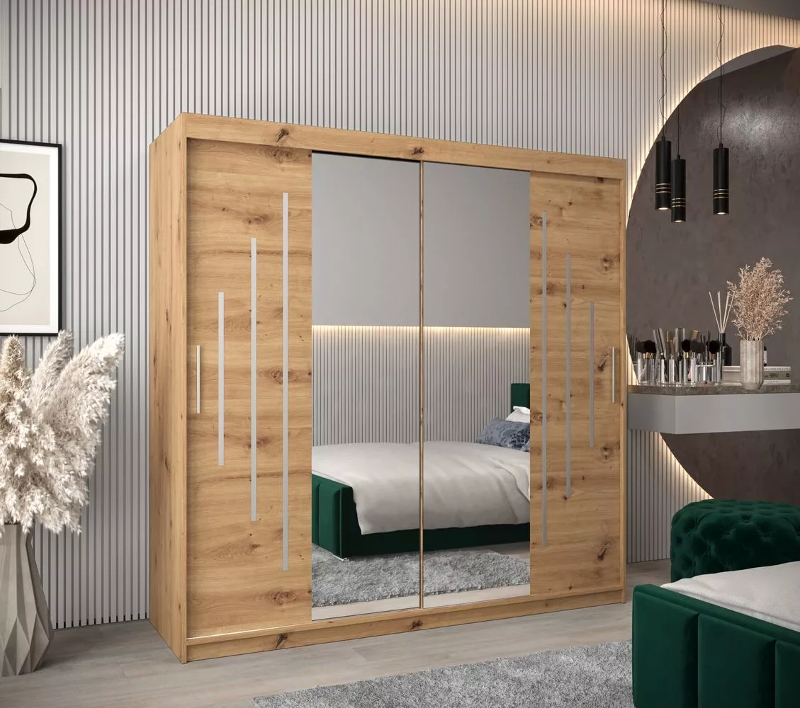 Šatní skříň se zrcadlem SOFIA - šířka 200 cm, dub artisan