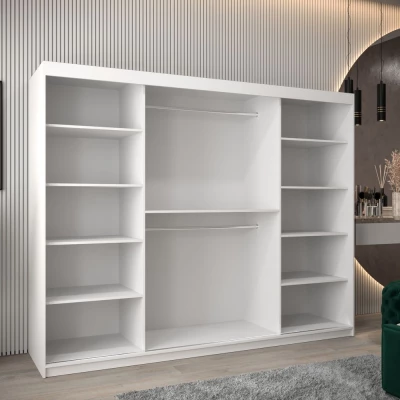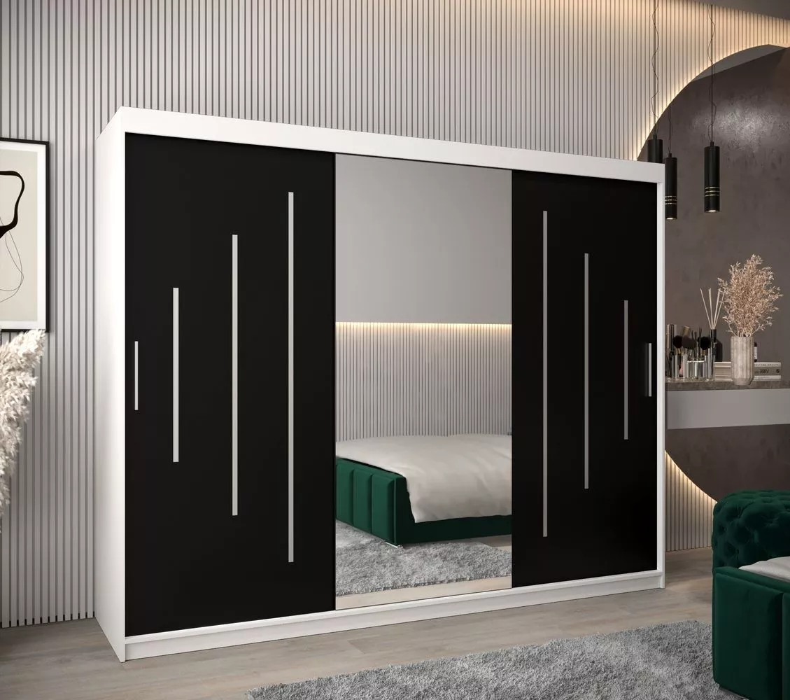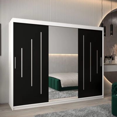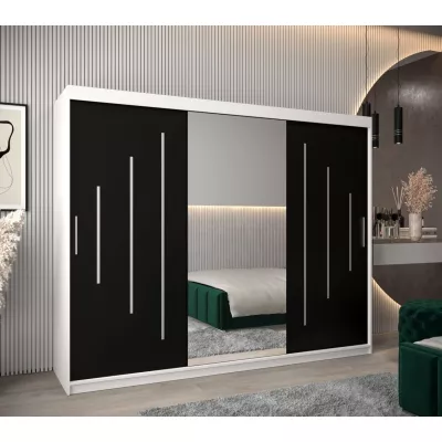 Šatní skříň se zrcadlem ANNA - šířka 250 cm, bílá / černá