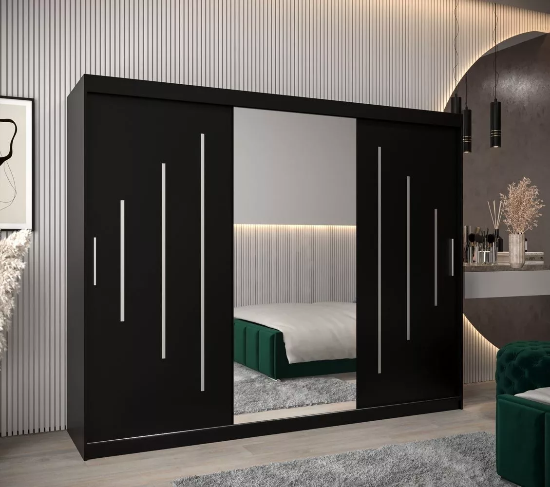 Šatní skříň se zrcadlem ANNA - šířka 250 cm, černá