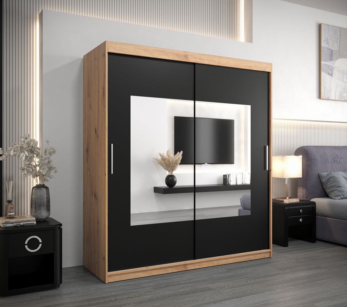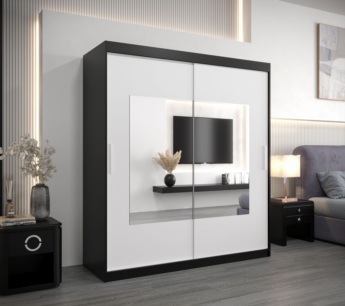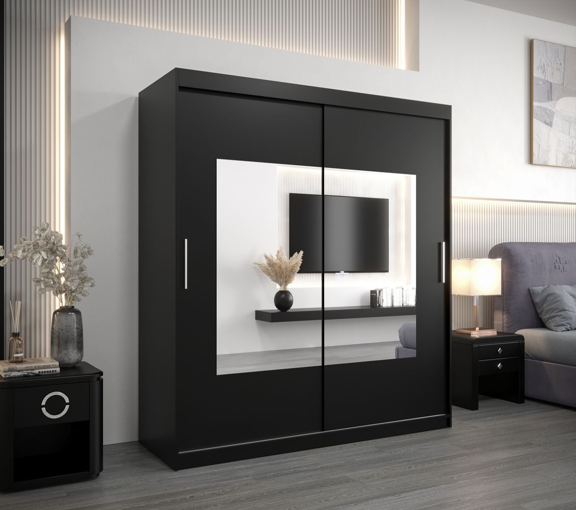 Šatní skříň se zrcadlem LISA - šířka 180 cm, černá