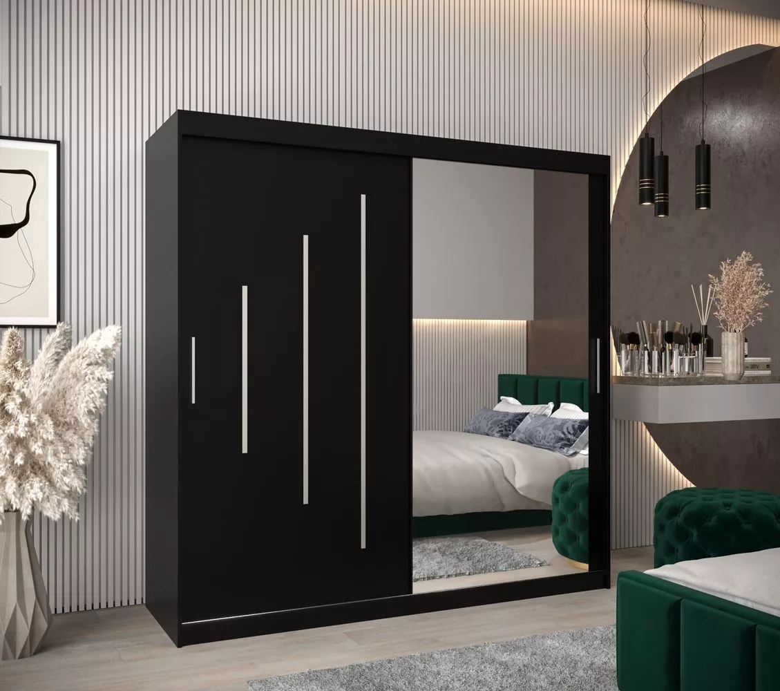 Šatní skříň se zrcadlem HANAH - šířka 200 cm, černá