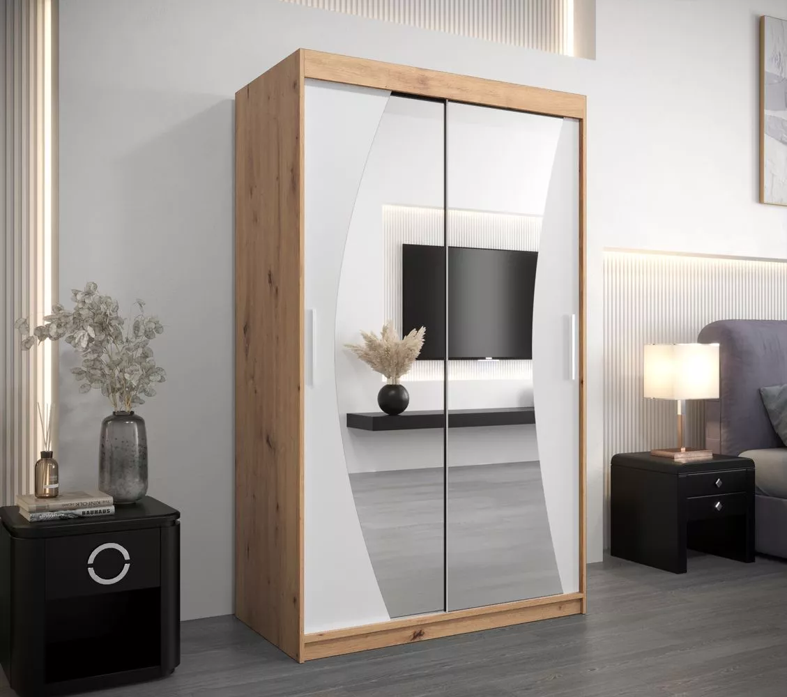 Skříň s posuvnými dveřmi AGATA - 120 cm, dub artisan / bílá