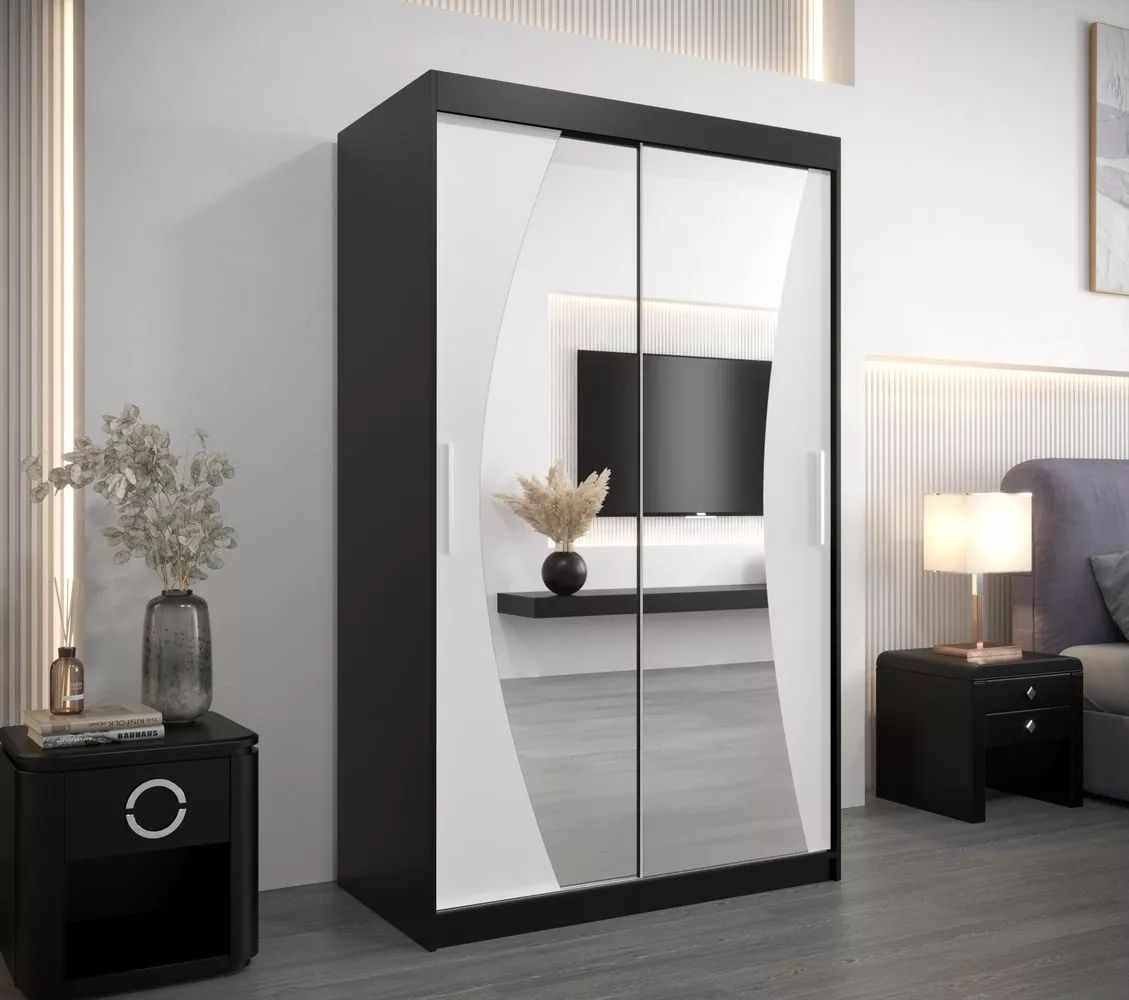 Skříň s posuvnými dveřmi AGATA - 120 cm, černá / bílá