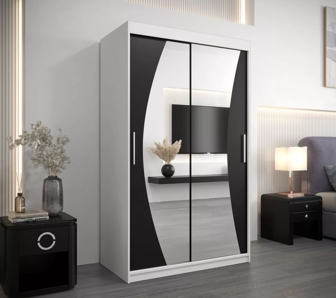 Skříň s posuvnými dveřmi AGATA - 120 cm, bílá / černá