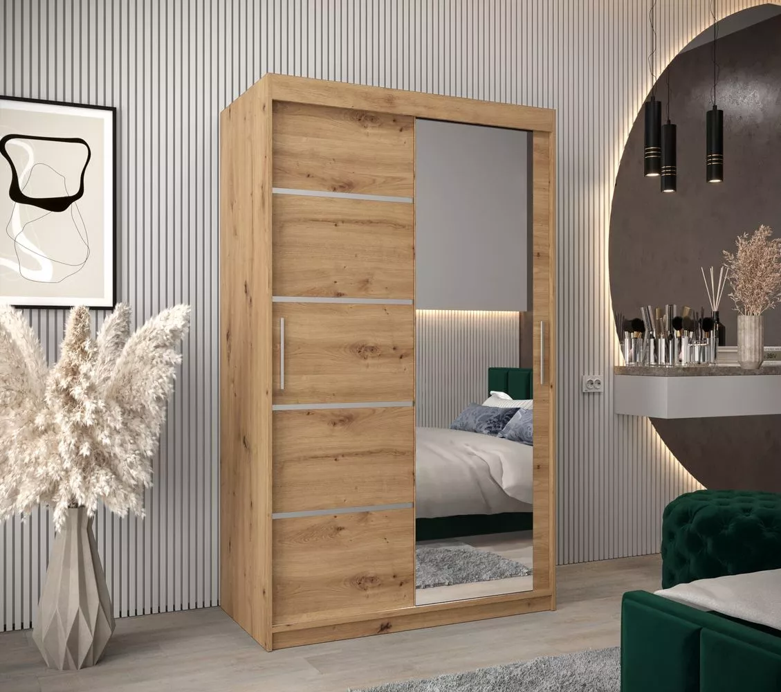 Šatní zrcadlová skříň ADELA - 120 cm, dub artisan