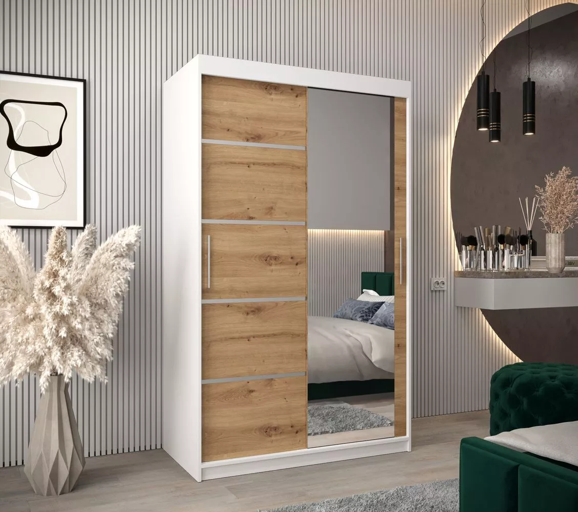 Šatní zrcadlová skříň ADELA - 120 cm, bílá / dub artisan