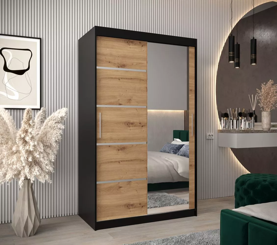 Šatní zrcadlová skříň ADELA - 120 cm, černá / dub artisan