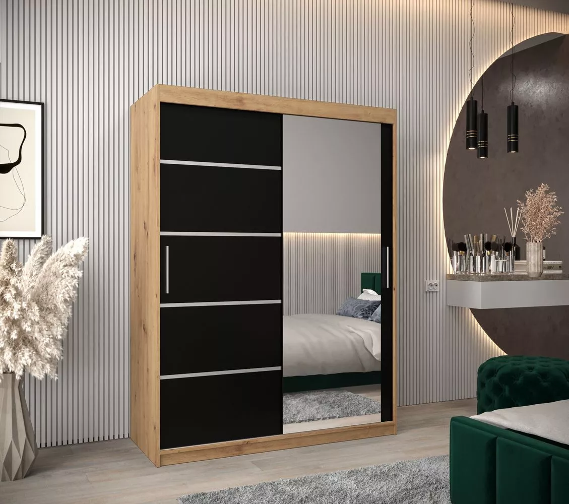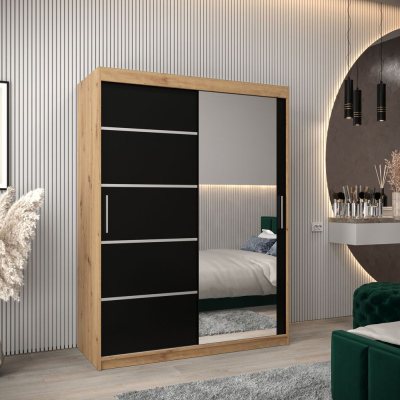 Šatní zrcadlová skříň ADELA - 150 cm, dub artisan / černá