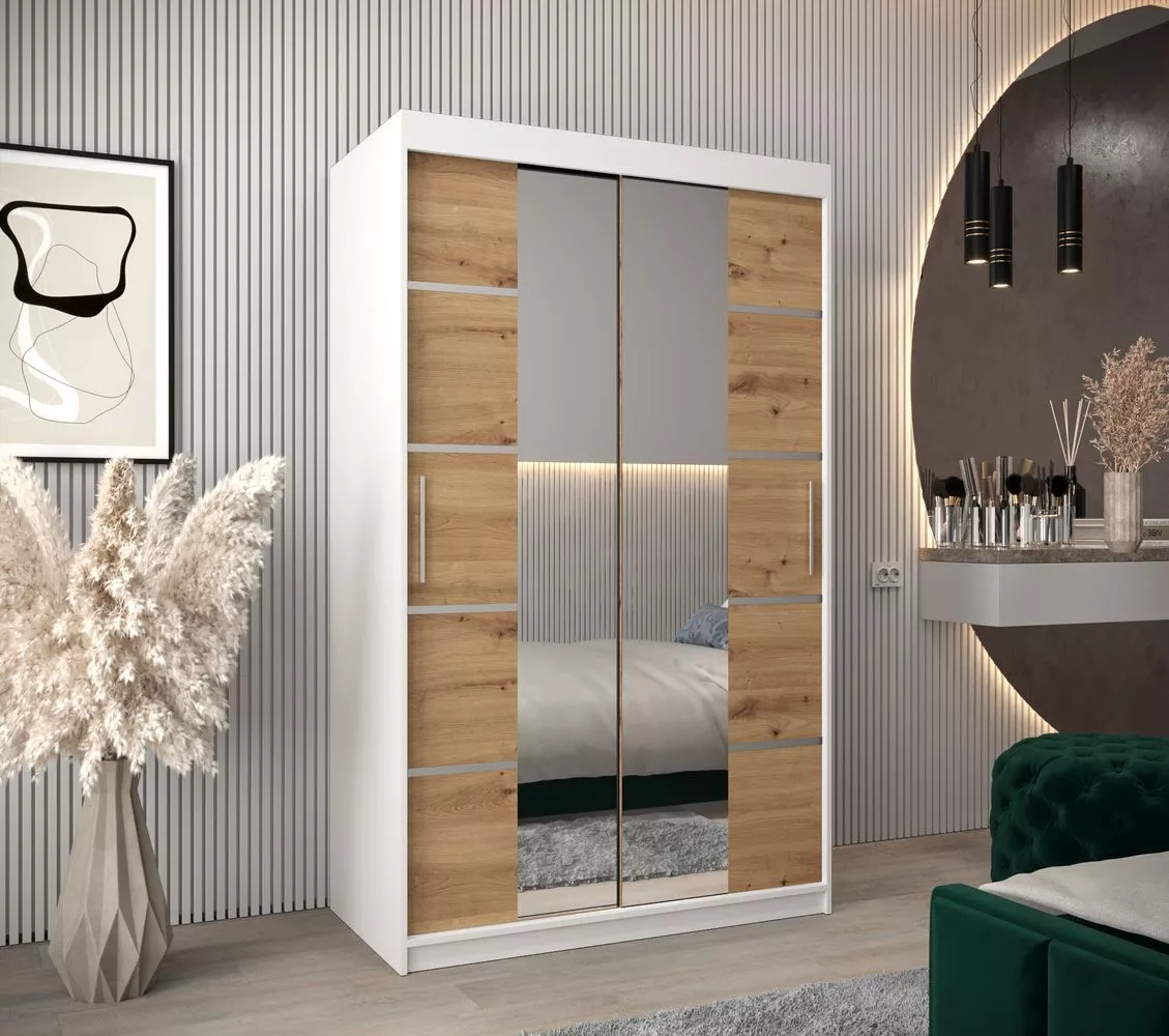Skříň se zrcadly VIVIEN - šířka 120 cm, bílá / dub artisan