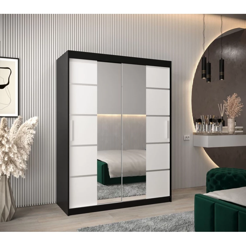 Skříň se zrcadly VIVIEN - šířka 150 cm, černá / bílá