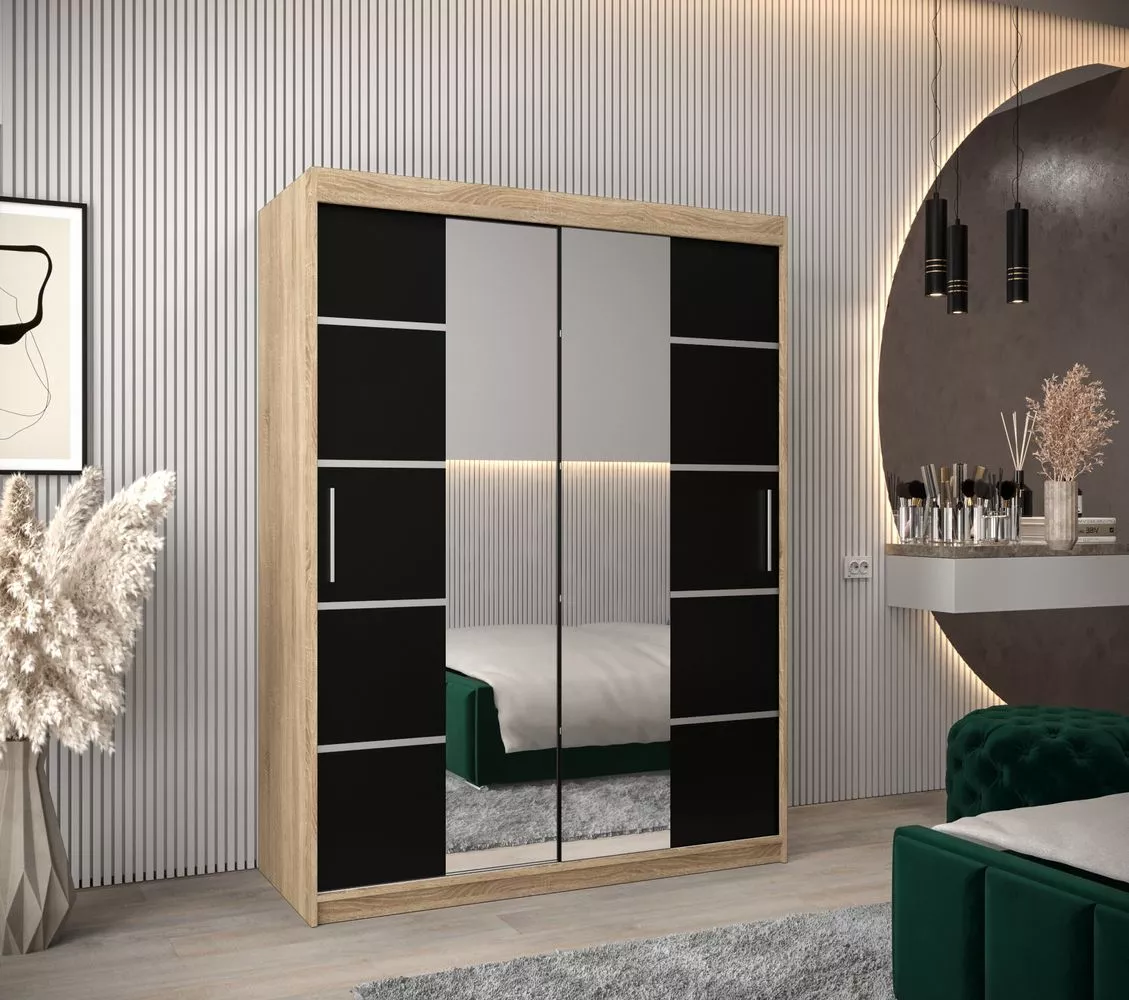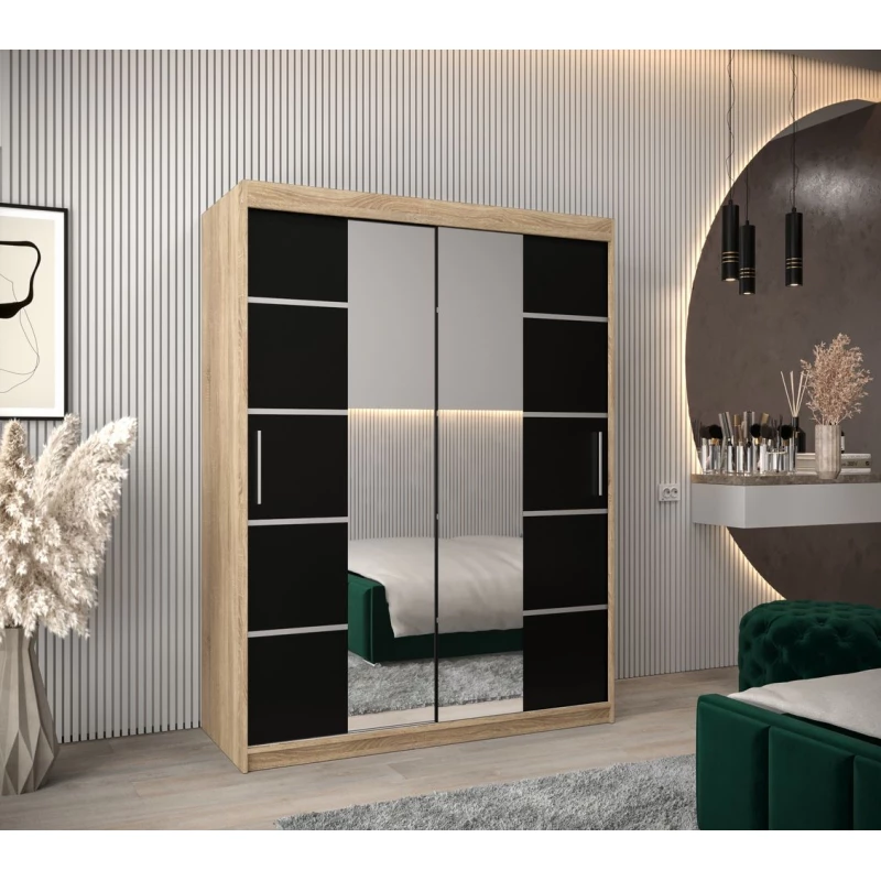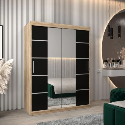 Skříň se zrcadly VIVIEN - šířka 150 cm, dub sonoma / černá