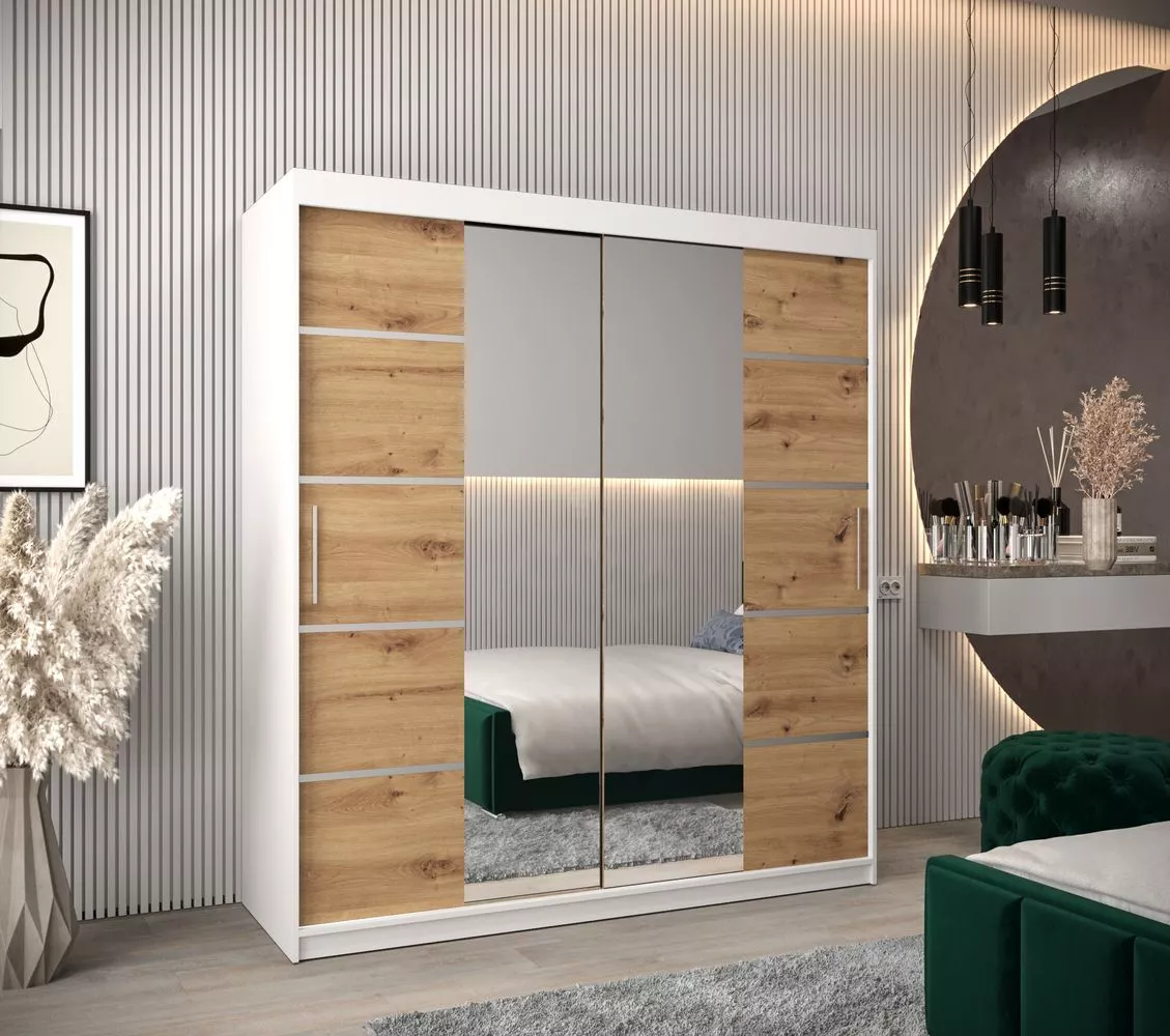 Skříň se zrcadly VIVIEN - šířka 180 cm, bílá / dub artisan