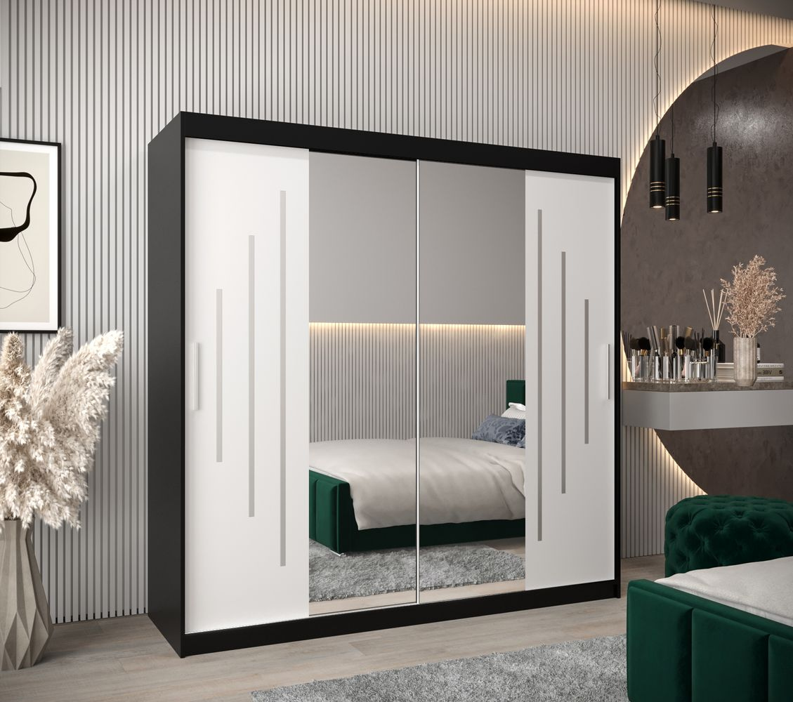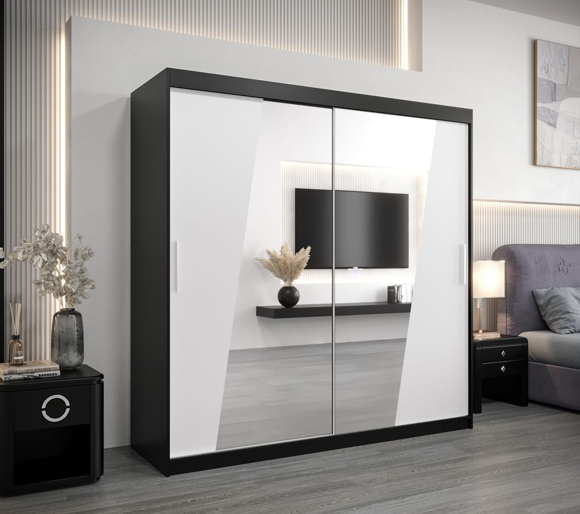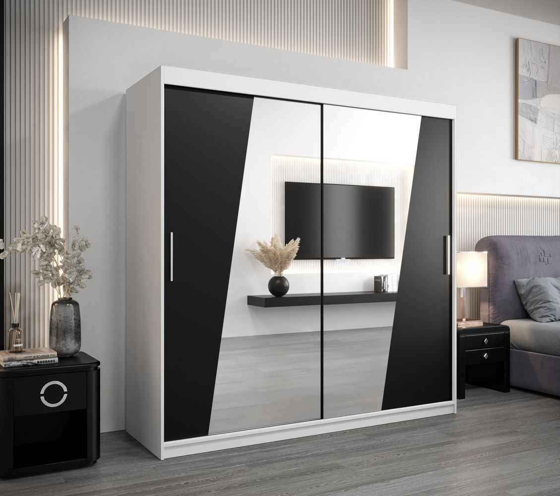 Skříň s posuvnými dveřmi v šířce 200 cm TIMEA 1 - bílá / černá