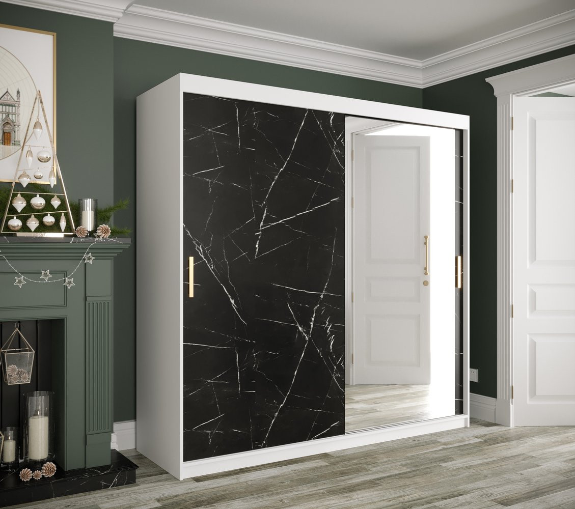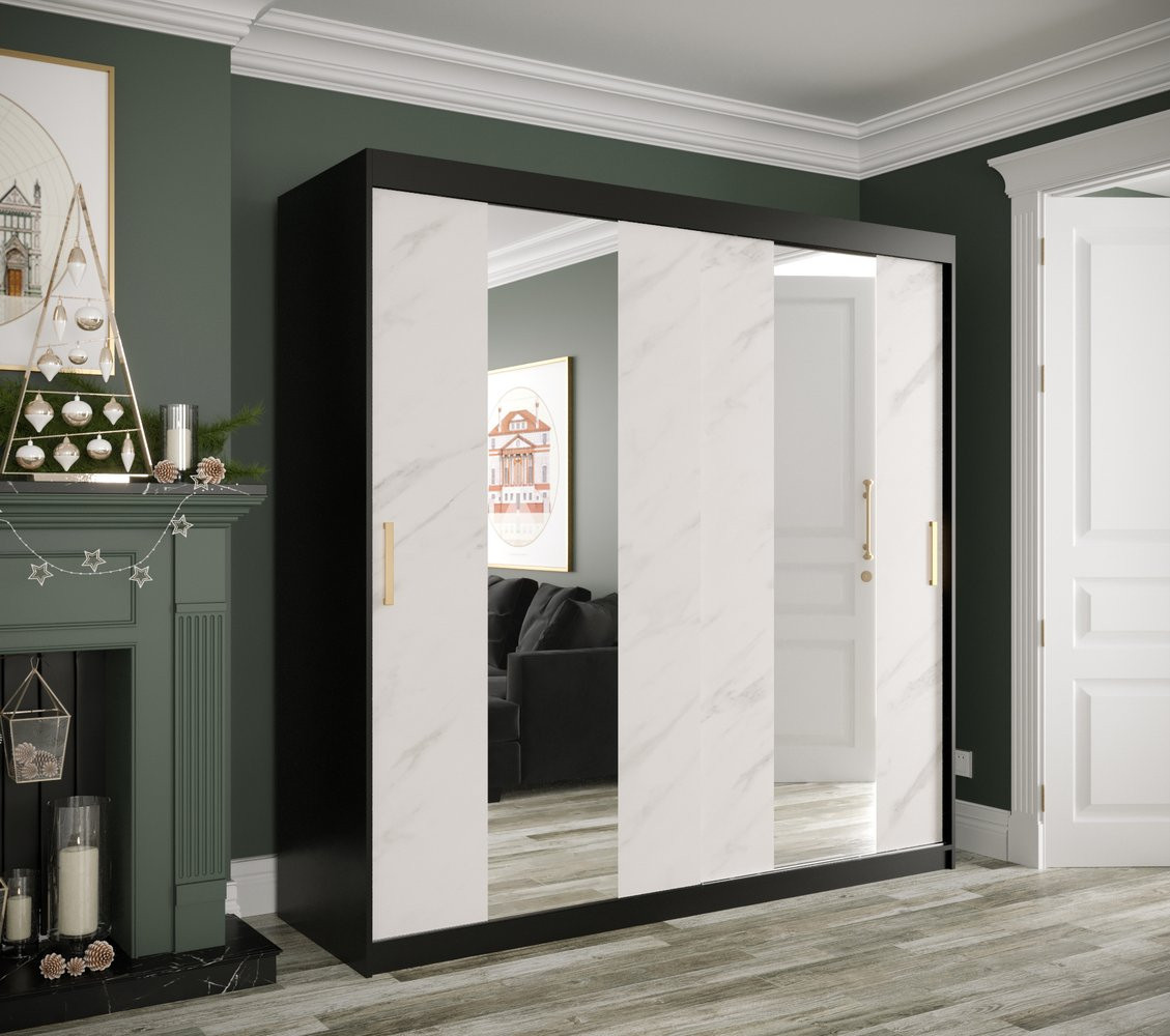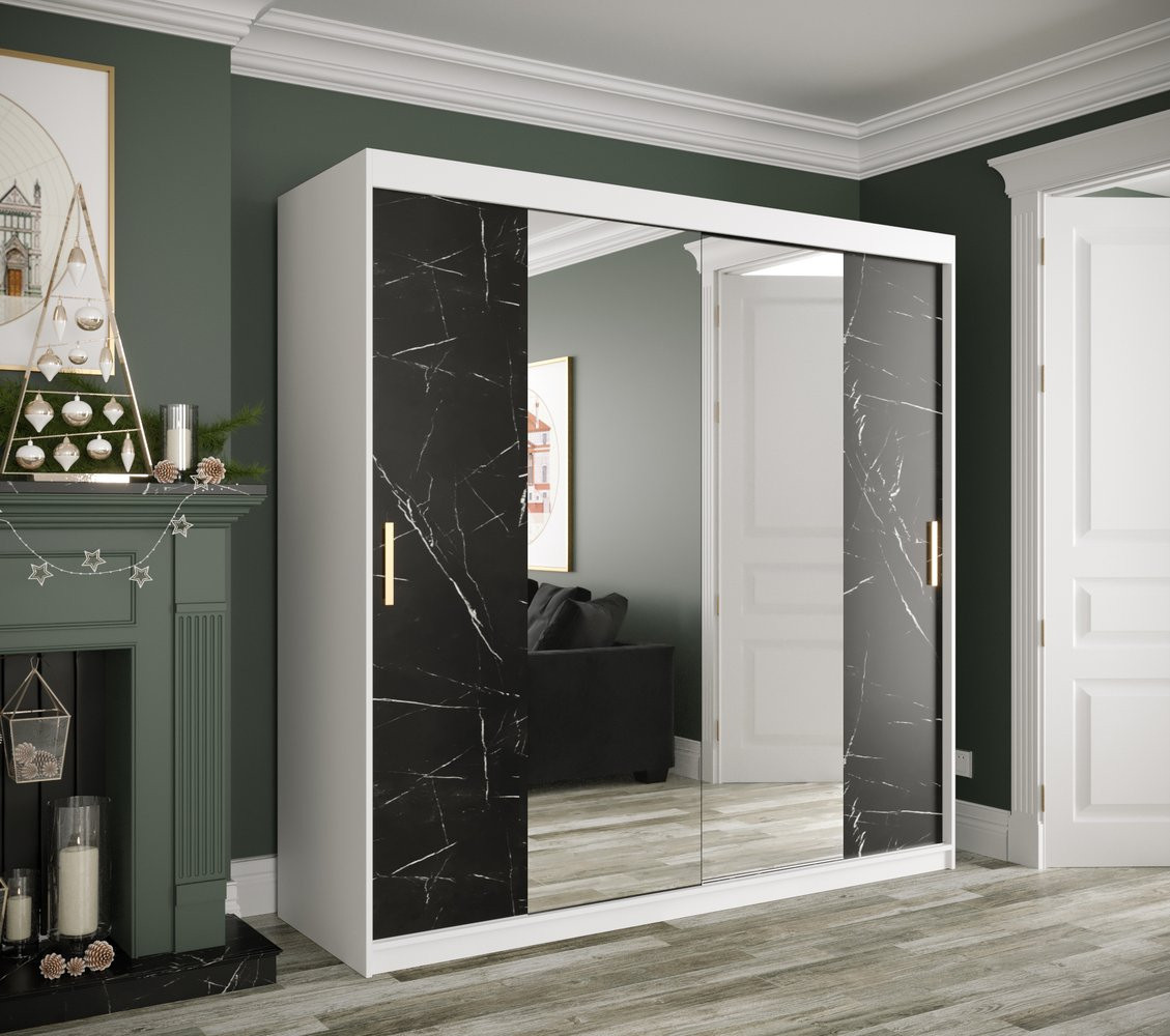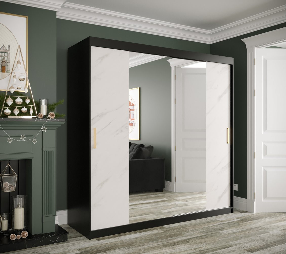 Skříň s posuvnými dveřmi v šířce 200 cm TIMEA 1 - bílá / černá