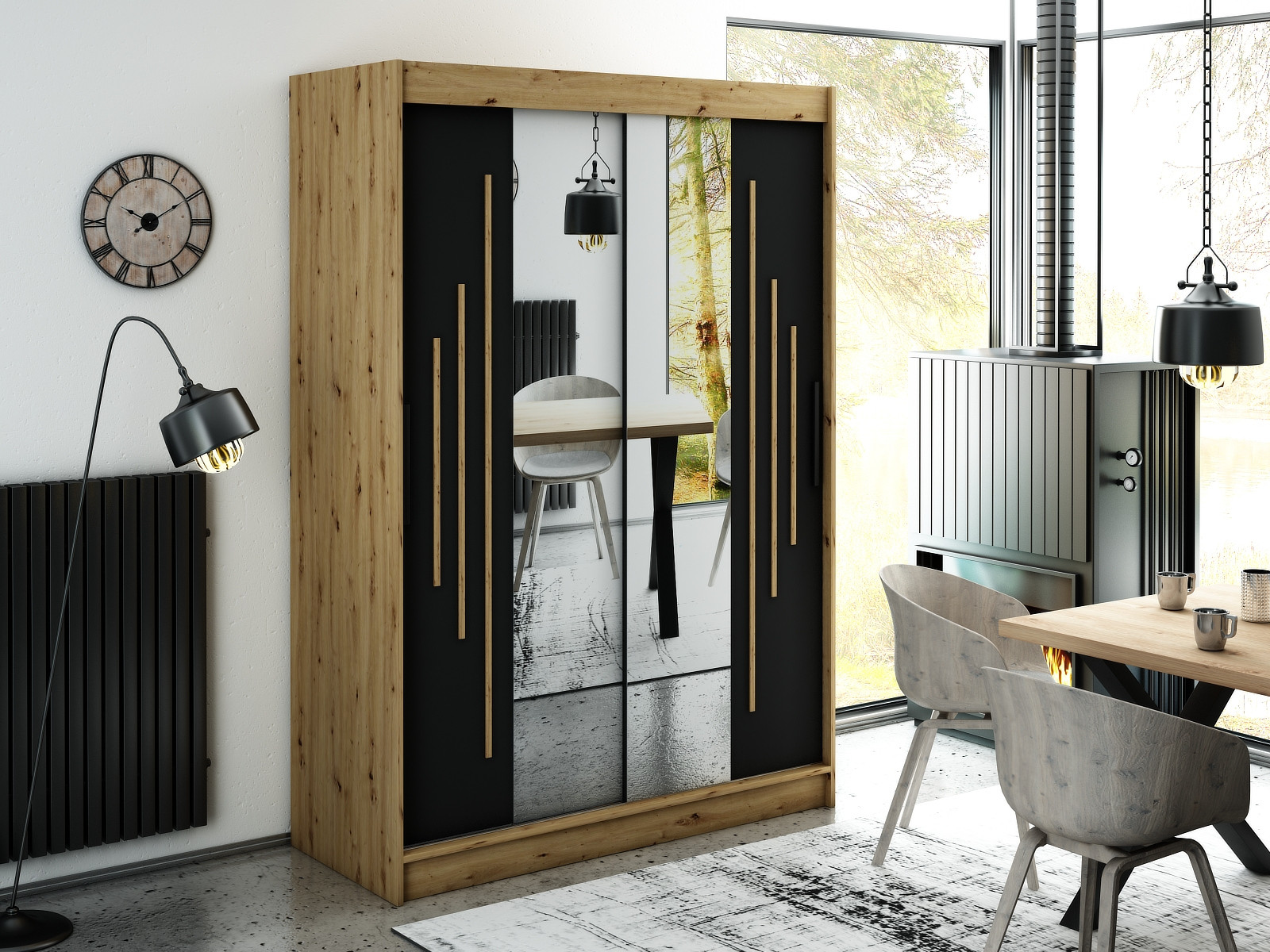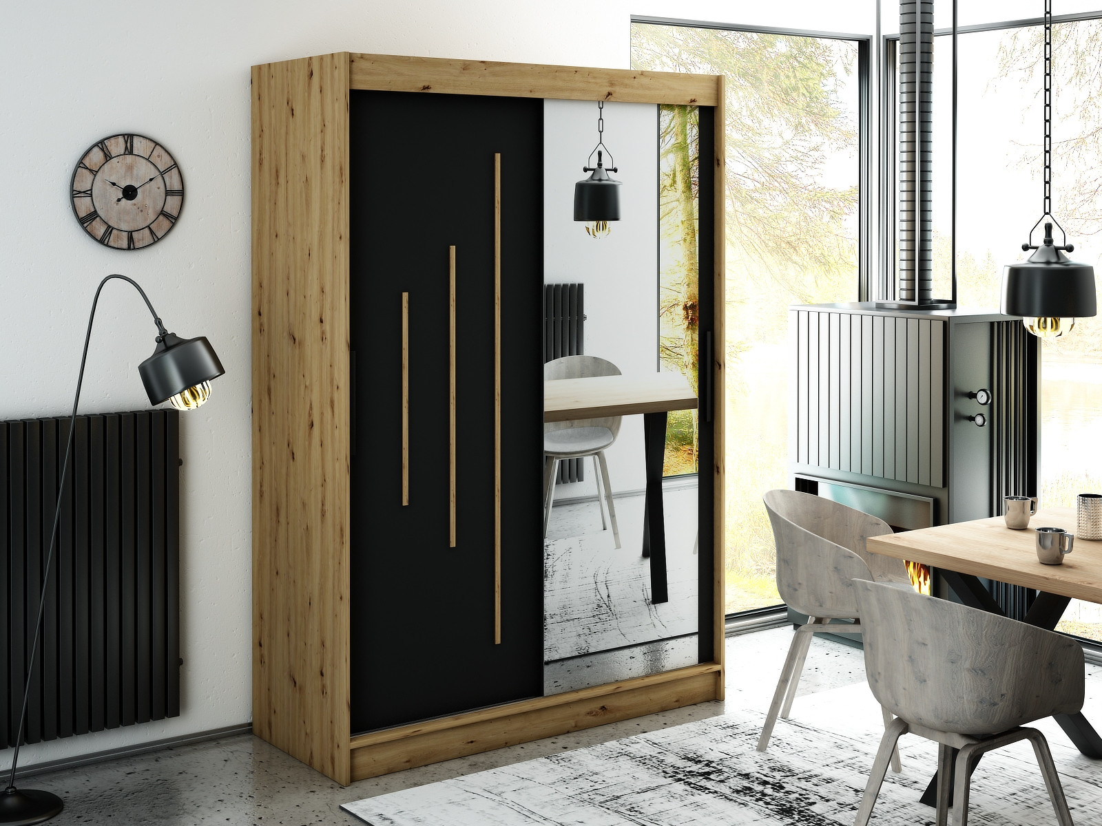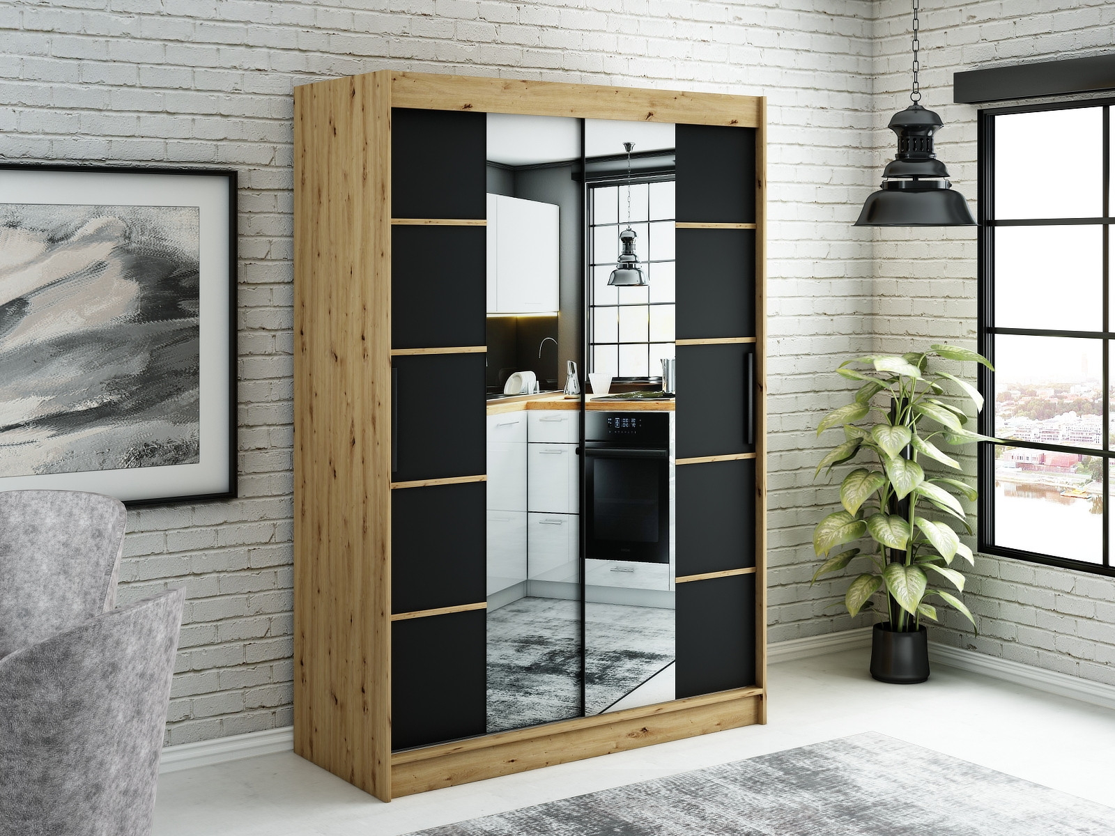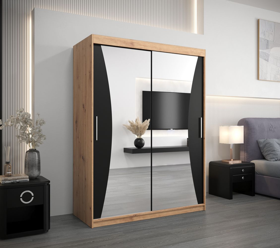 Skříň s posuvnými dveřmi v šířce 150 cm TIMEA 2 - dub artisan / černá