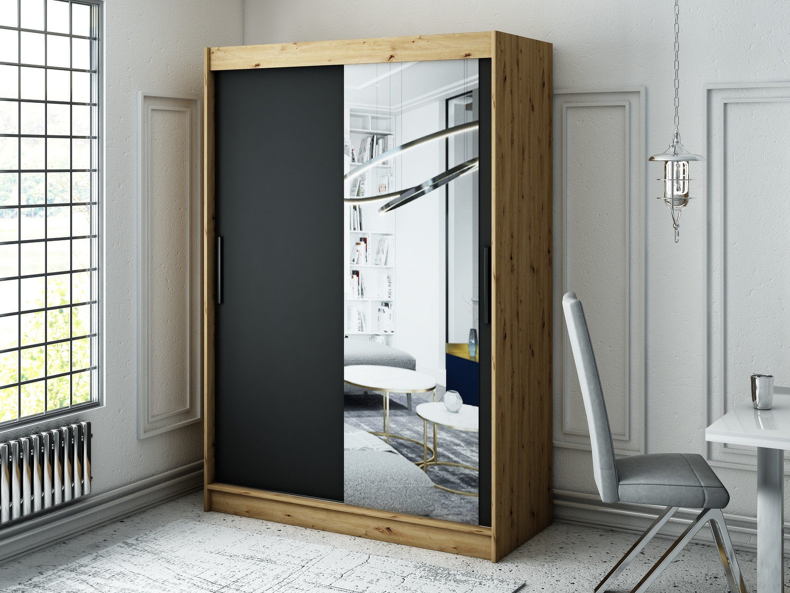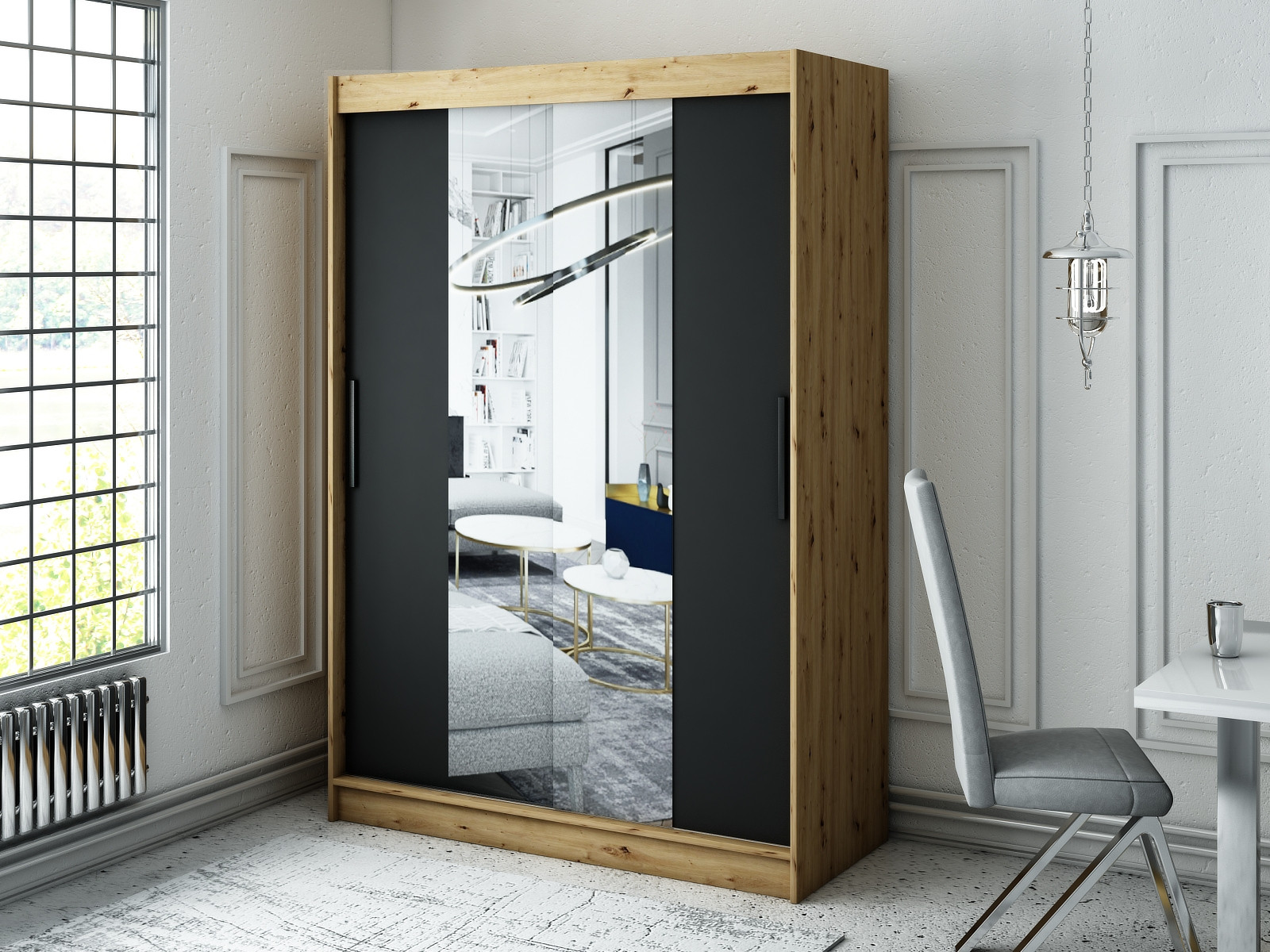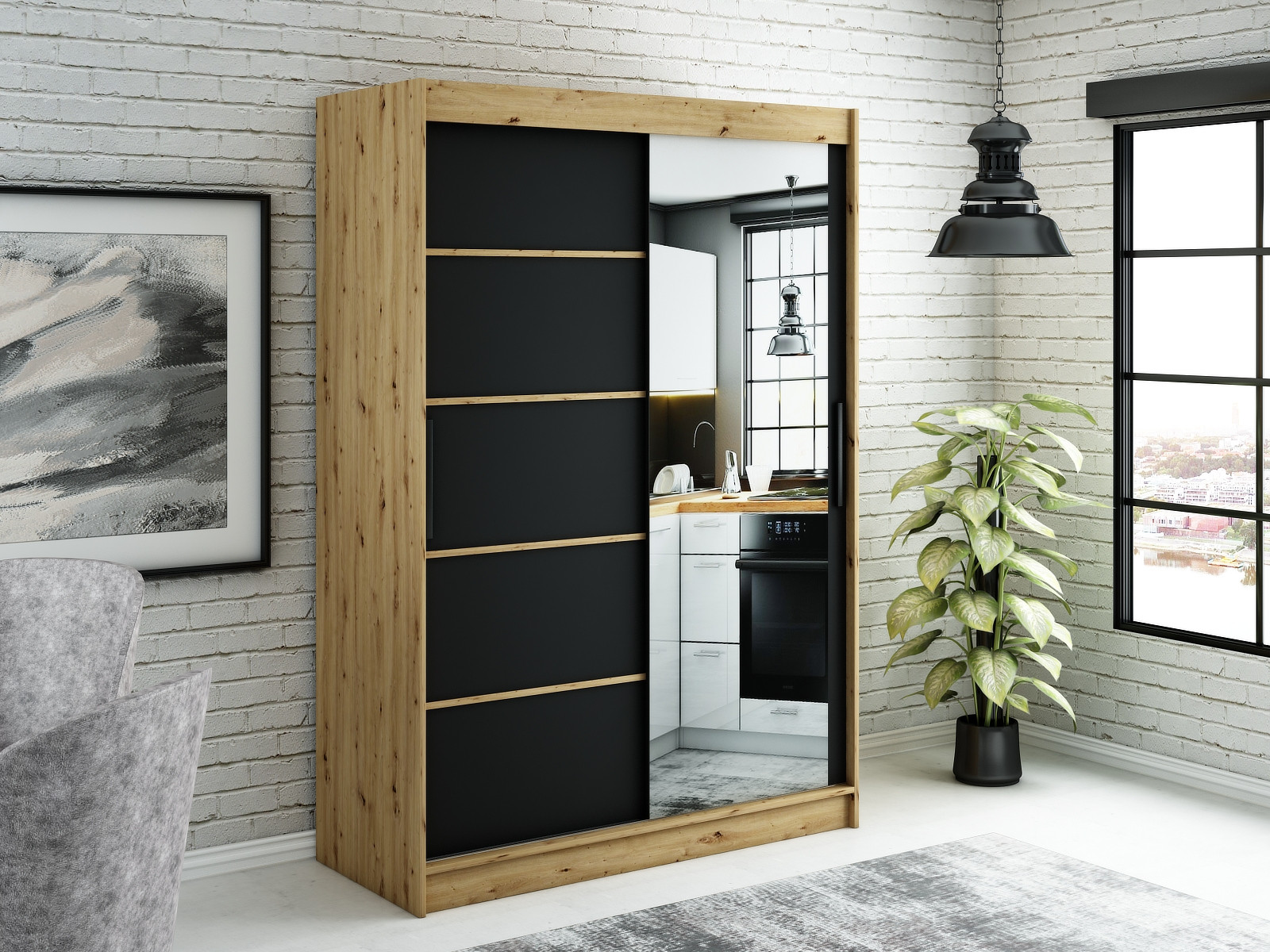 Skříň s posuvnými dveřmi v šířce 150 cm TIMEA 2 - dub artisan / černá