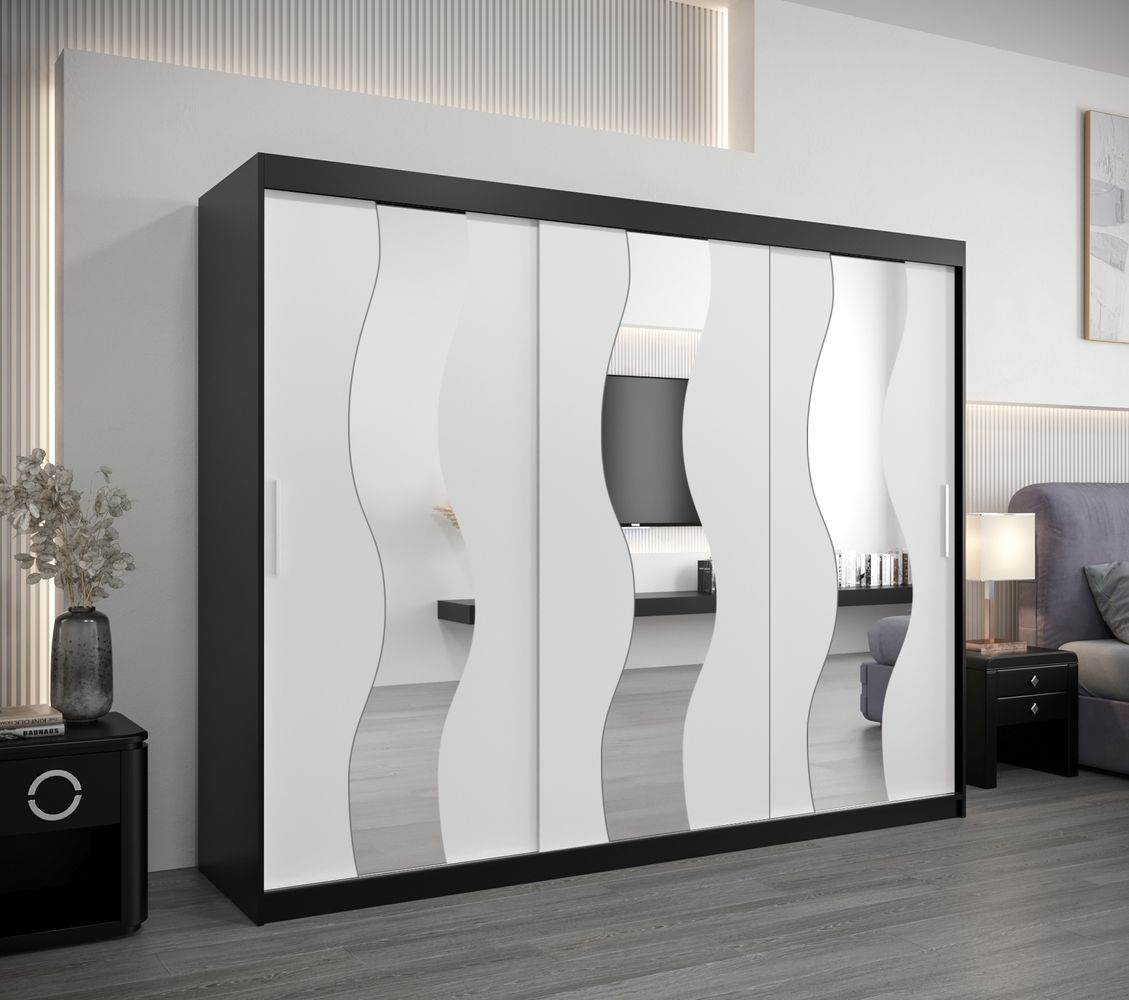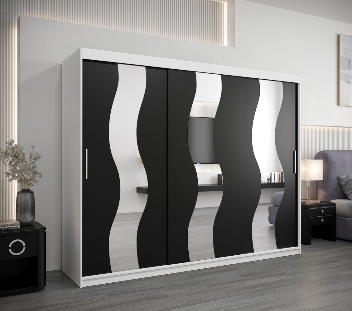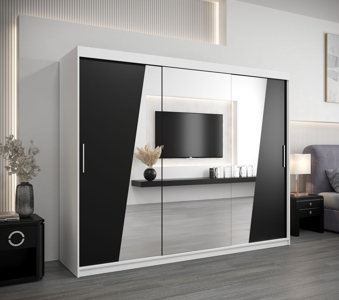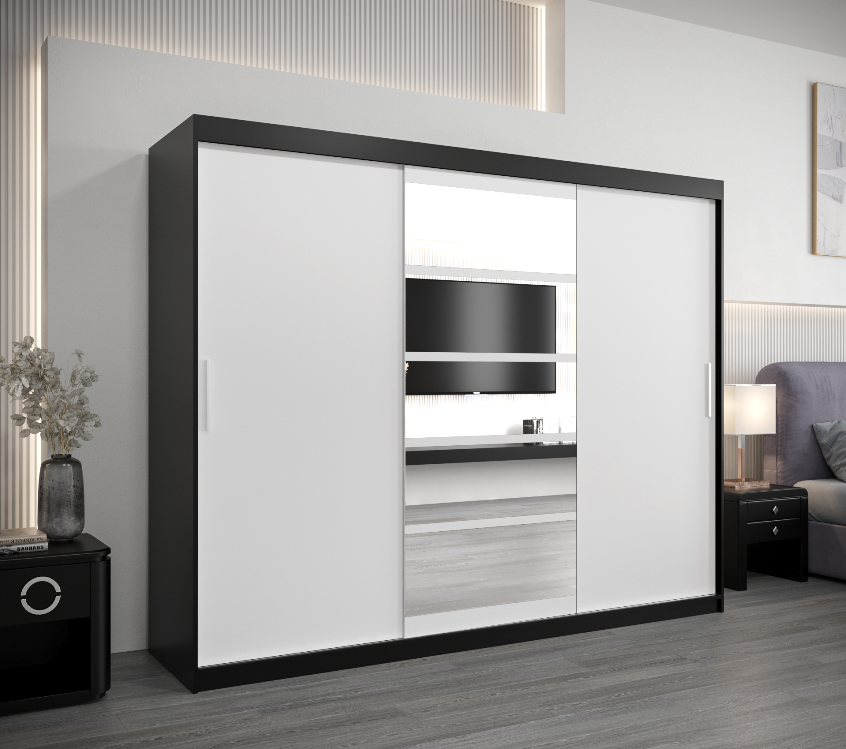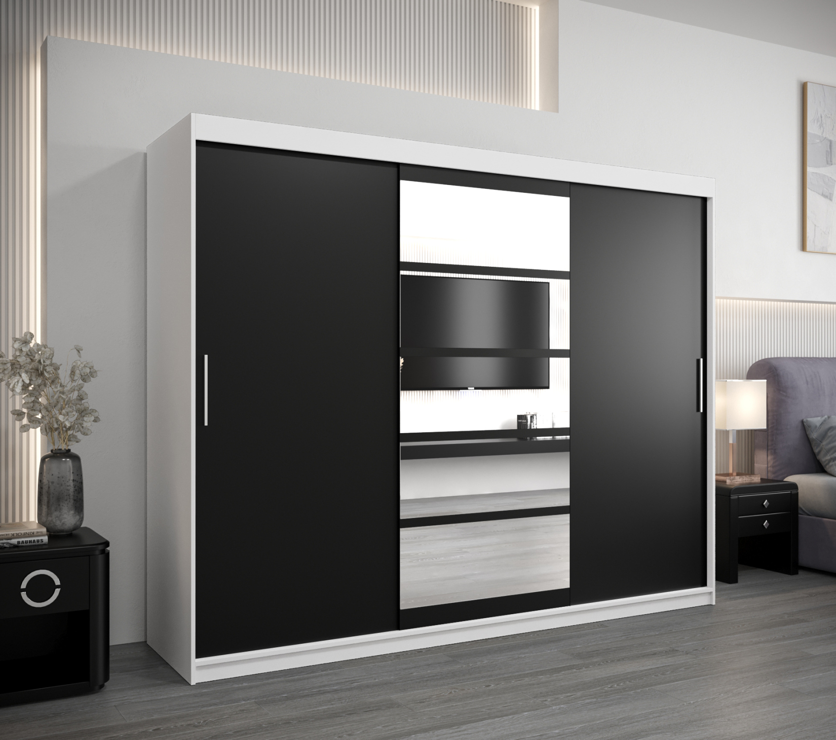 Skříň s posuvnými dveřmi v šířce 250 cm TIMEA 2 - černá / bílá