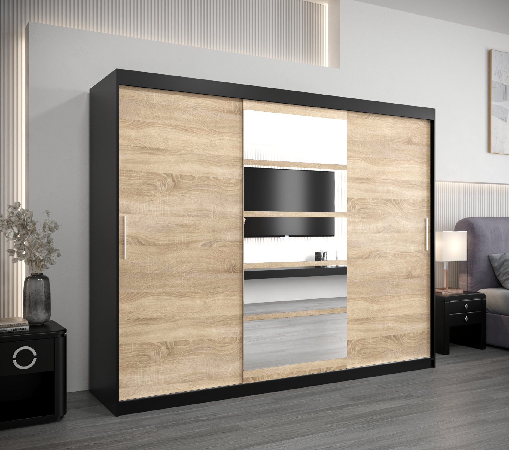 Skříň s posuvnými dveřmi v šířce 250 cm TIMEA 2 - černá / dub sonoma