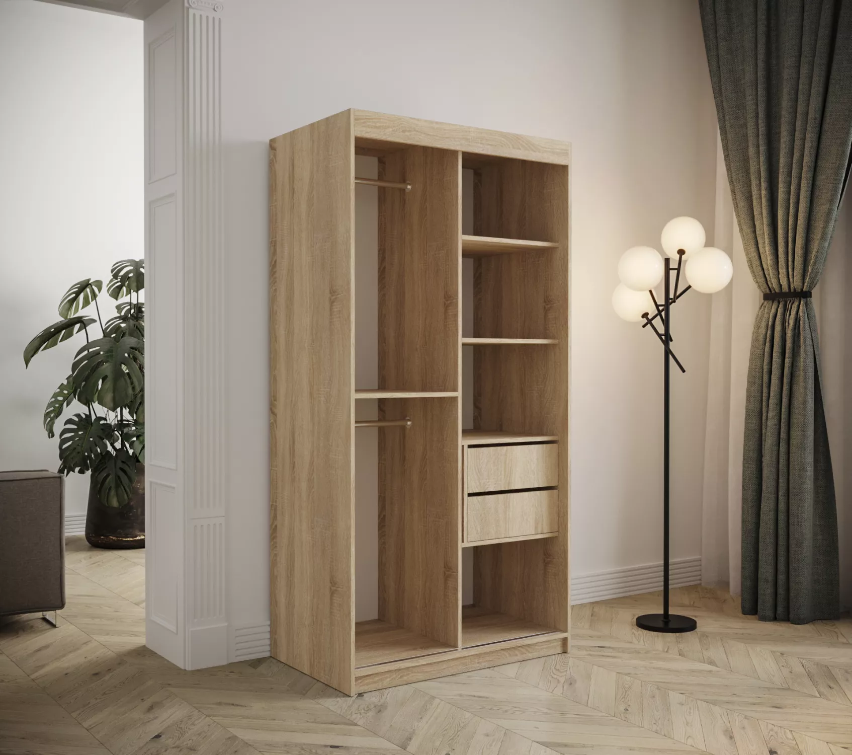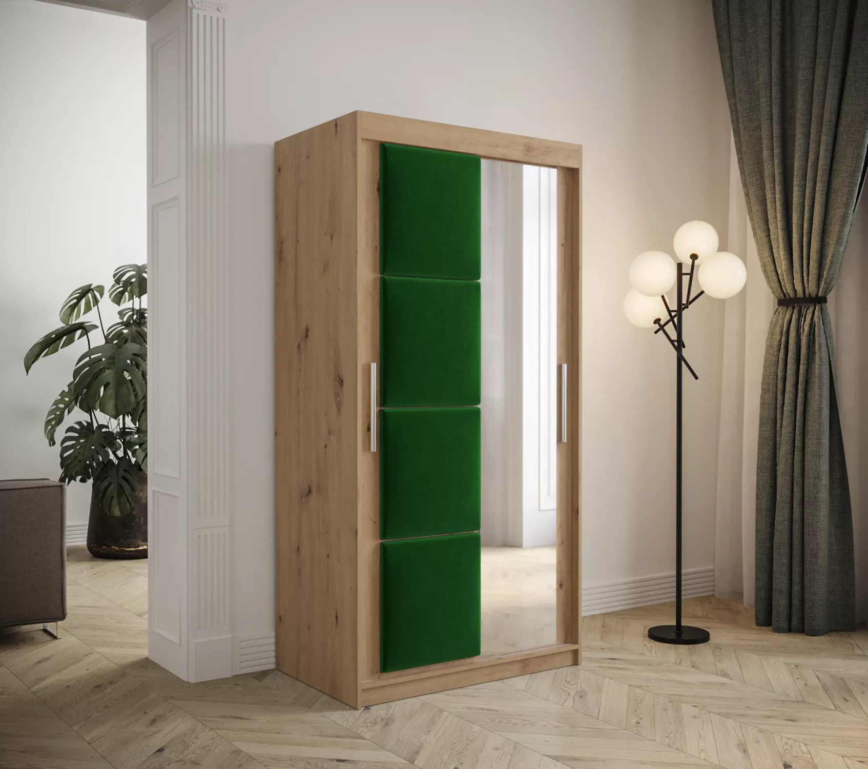 Šatní skříň s posuvnými dveřmi 100 cm TALIA - dub artisan / zelená