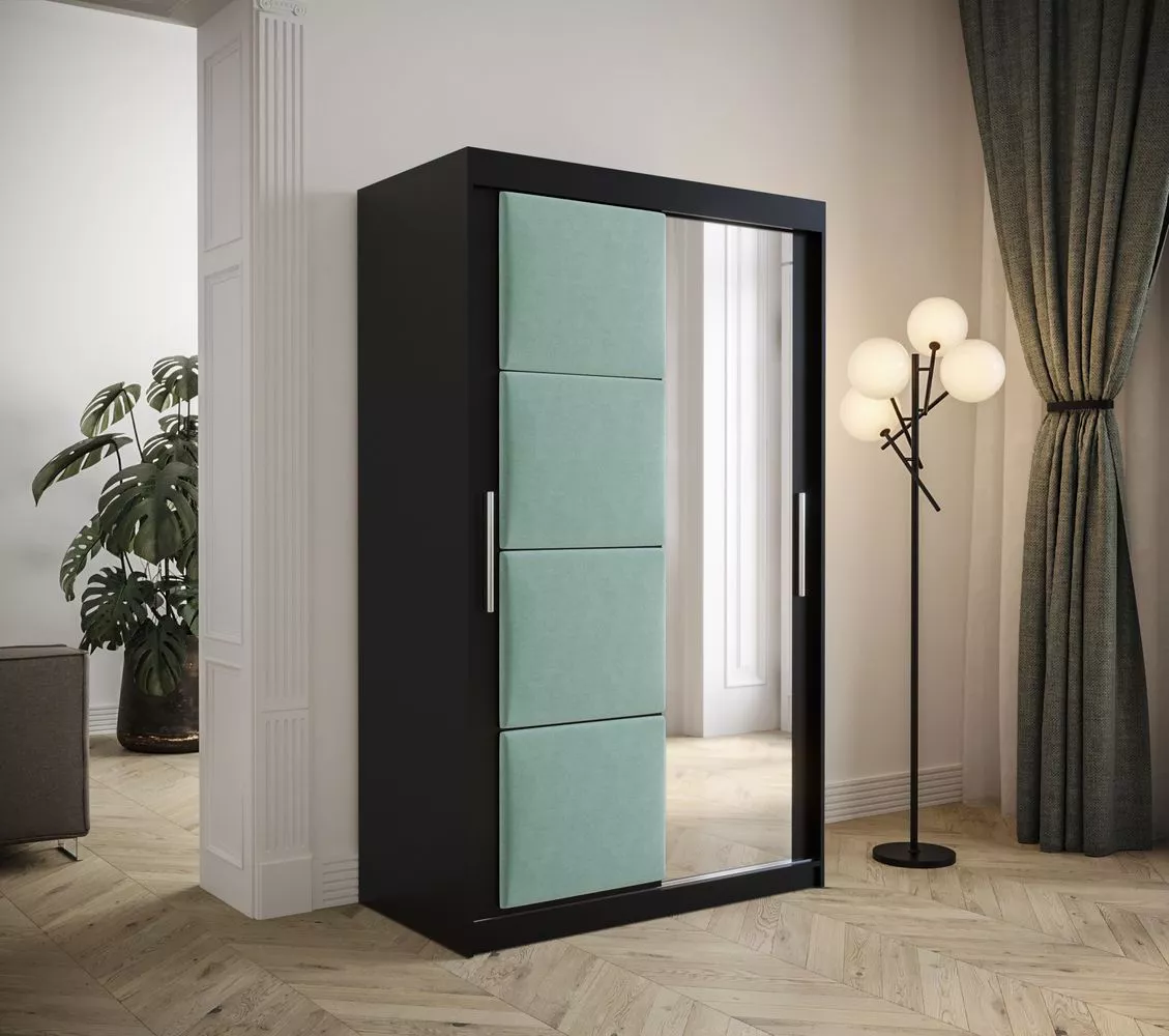 Šatní skříň s posuvnými dveřmi 120 cm TALIA - černá / tyrkysová