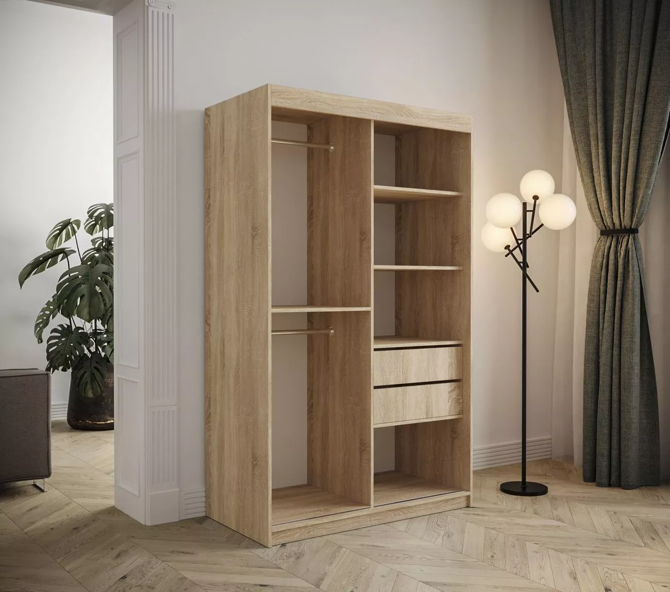Šuplíky vyobrazené na fotografii najdete k dokoupení v sekci Doporučujeme přikoupit. Pořídíte je v setu po 2 kusech včetně vodících lišt (pojezdů). Do skříně je možné nainstalovat 1 set šuplíků.