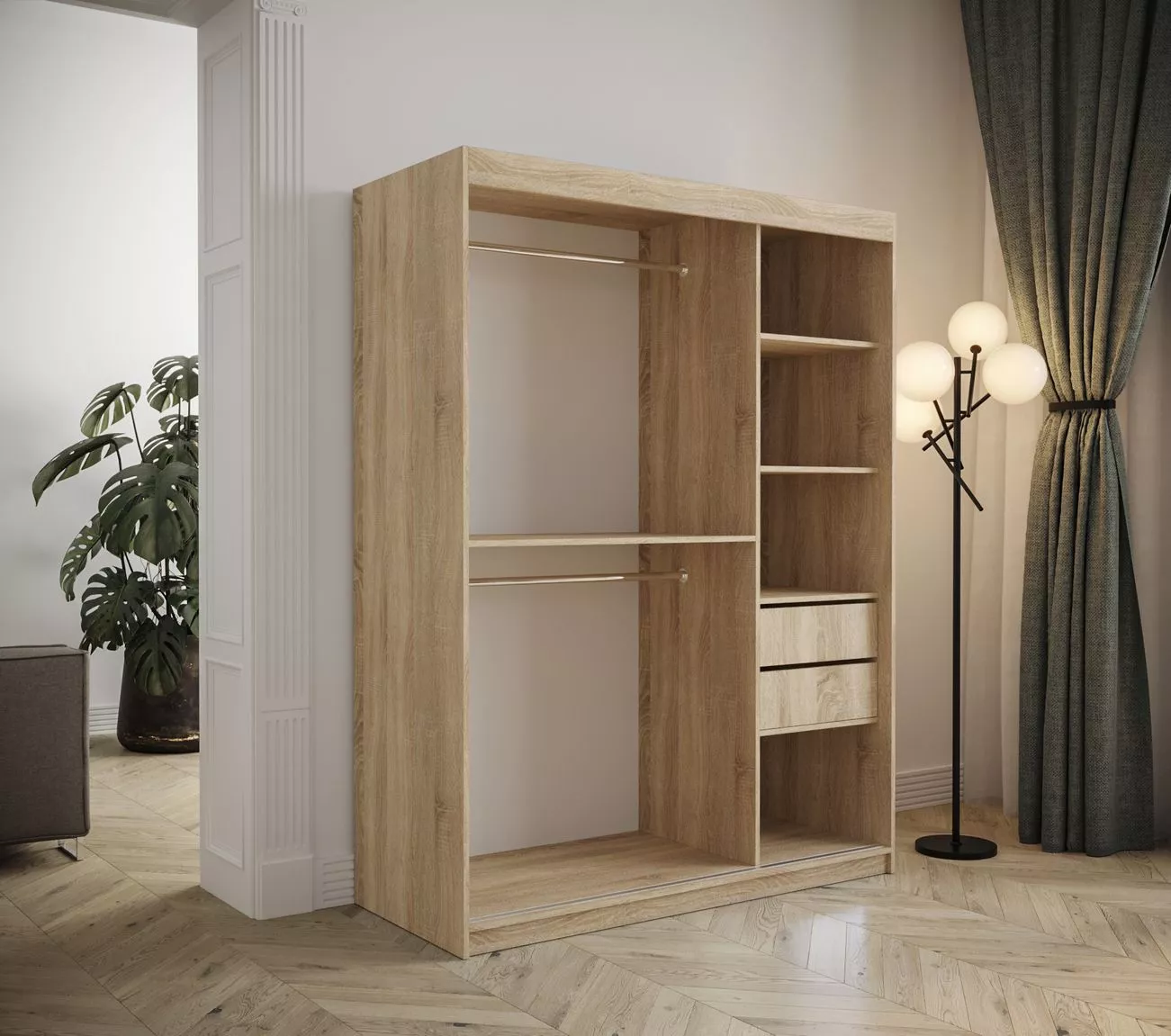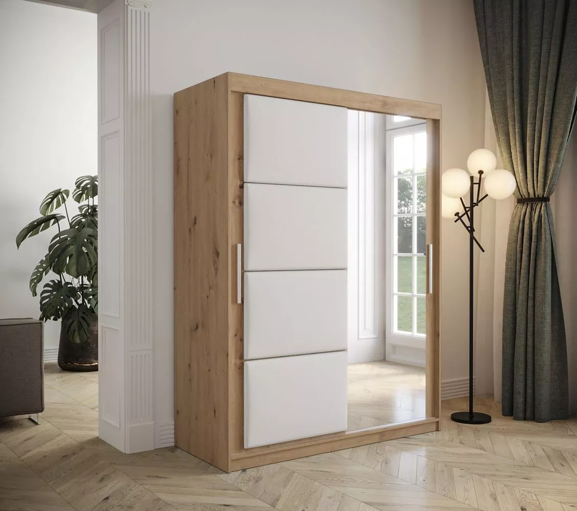 Šatní skříň s posuvnými dveřmi 150 cm TALIA - dub artisan / bílá
