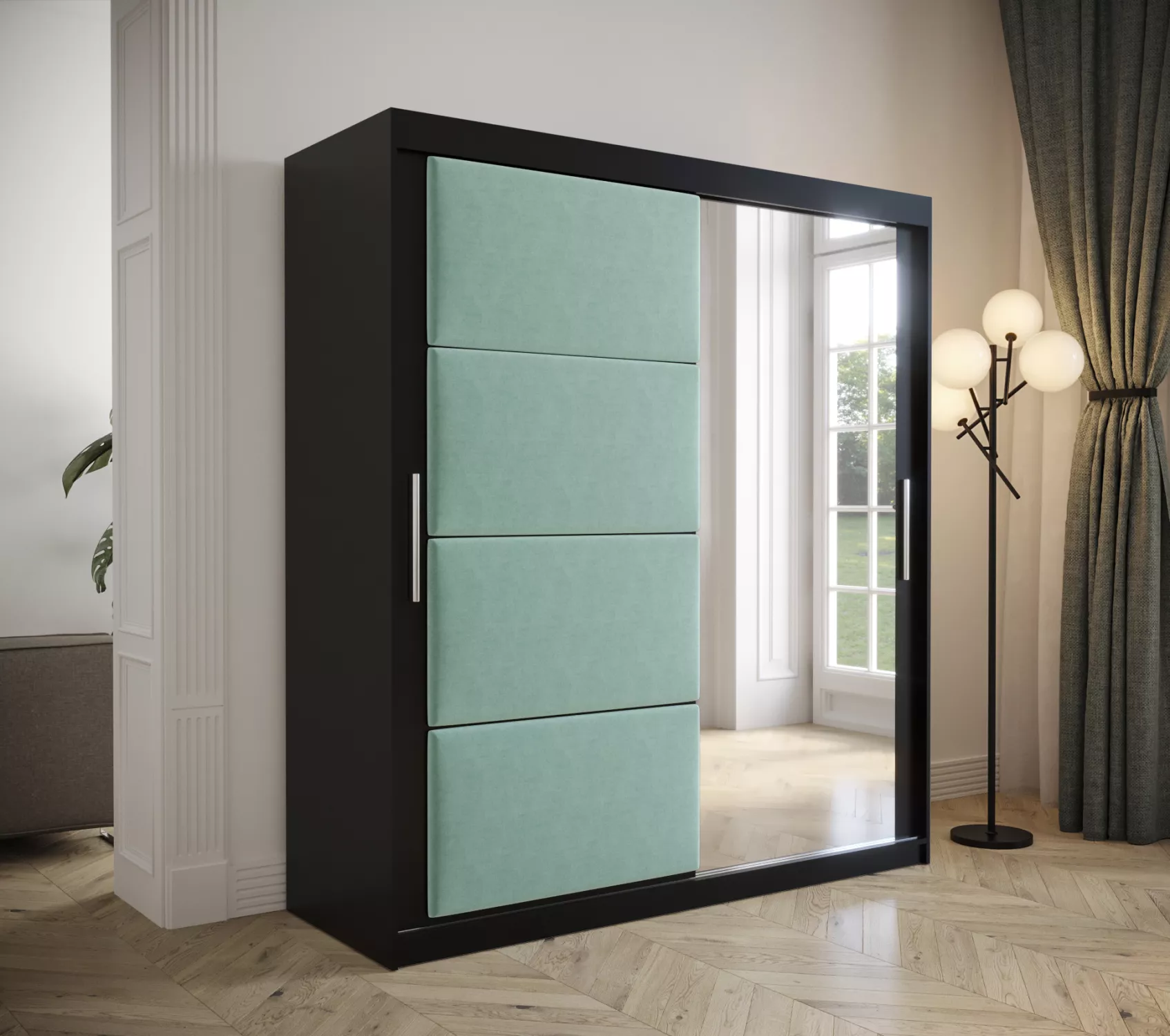 Šatní skříň s posuvnými dveřmi 180 cm TALIA - černá / tyrkysová