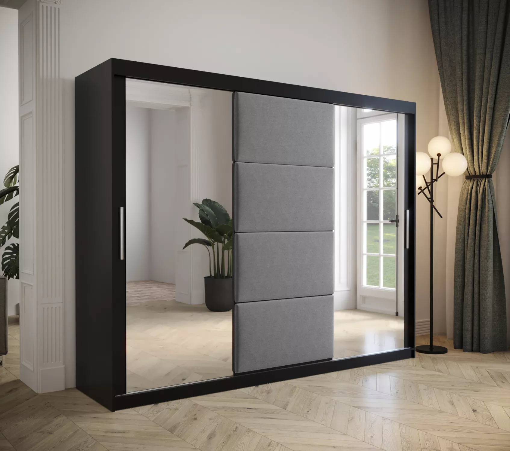 Šatní skříň s posuvnými dveřmi 250 cm TALIA - černá / šedá