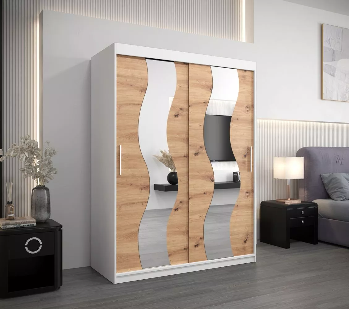 Šatní skříň se zrcadly IRMA - šířka 150 cm, bílá / dub artisan