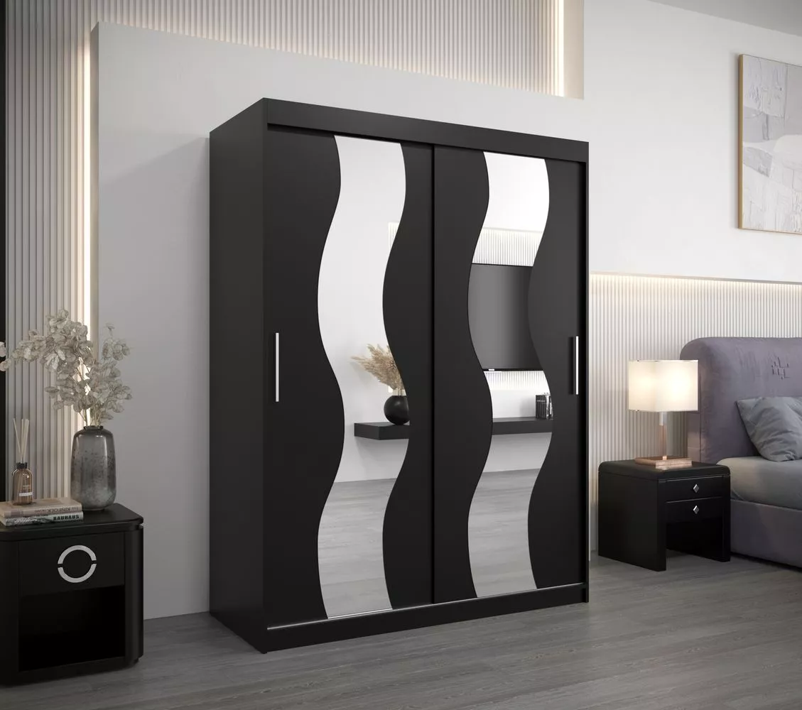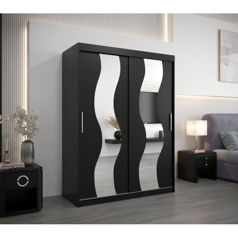 Šatní skříň se zrcadly IRMA - šířka 150 cm, černá