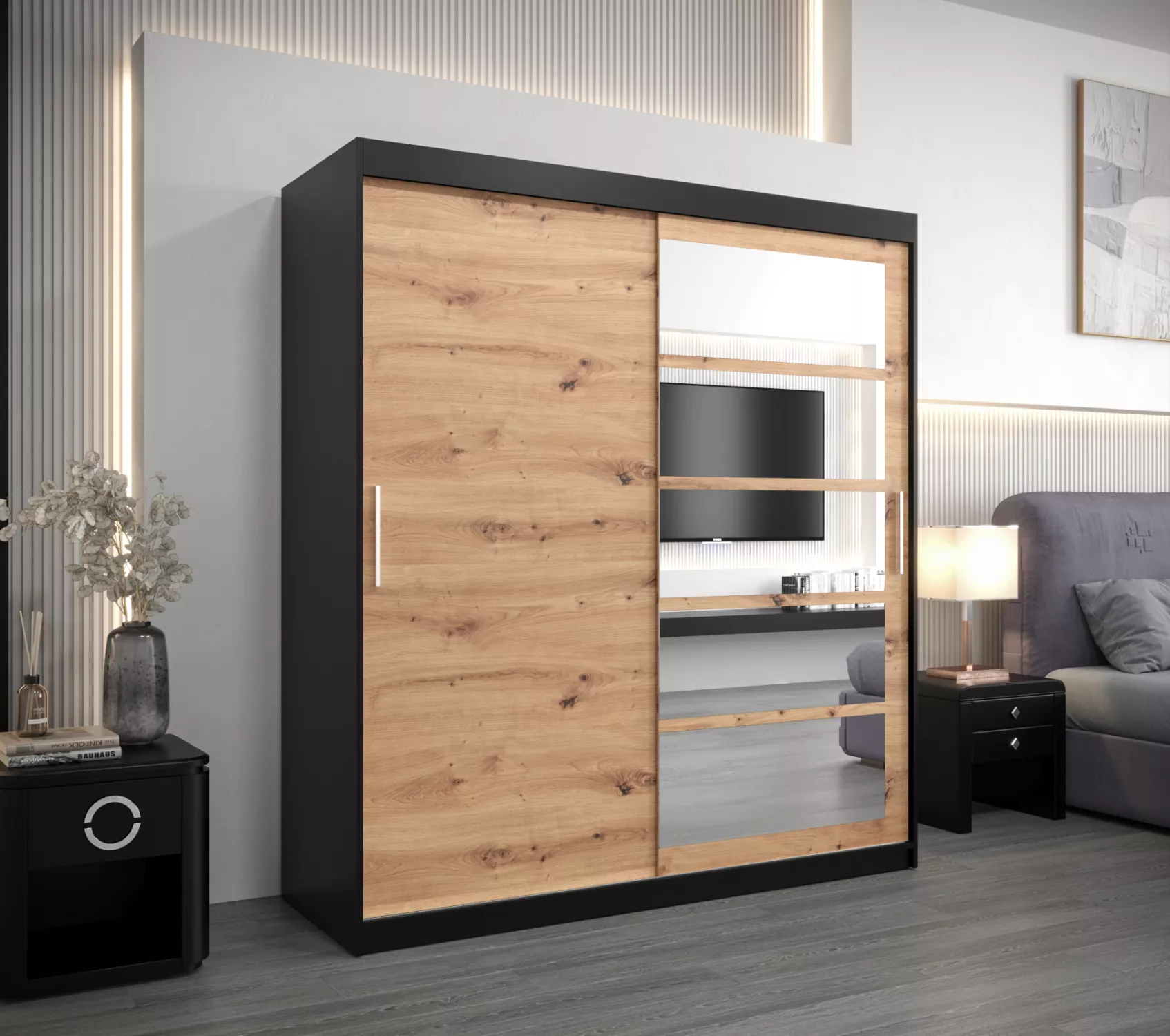 Skříň s posuvnými dveřmi MICHALELA - šířka 180 cm, černá / dub artisan